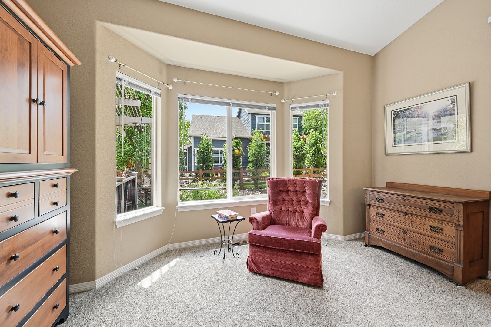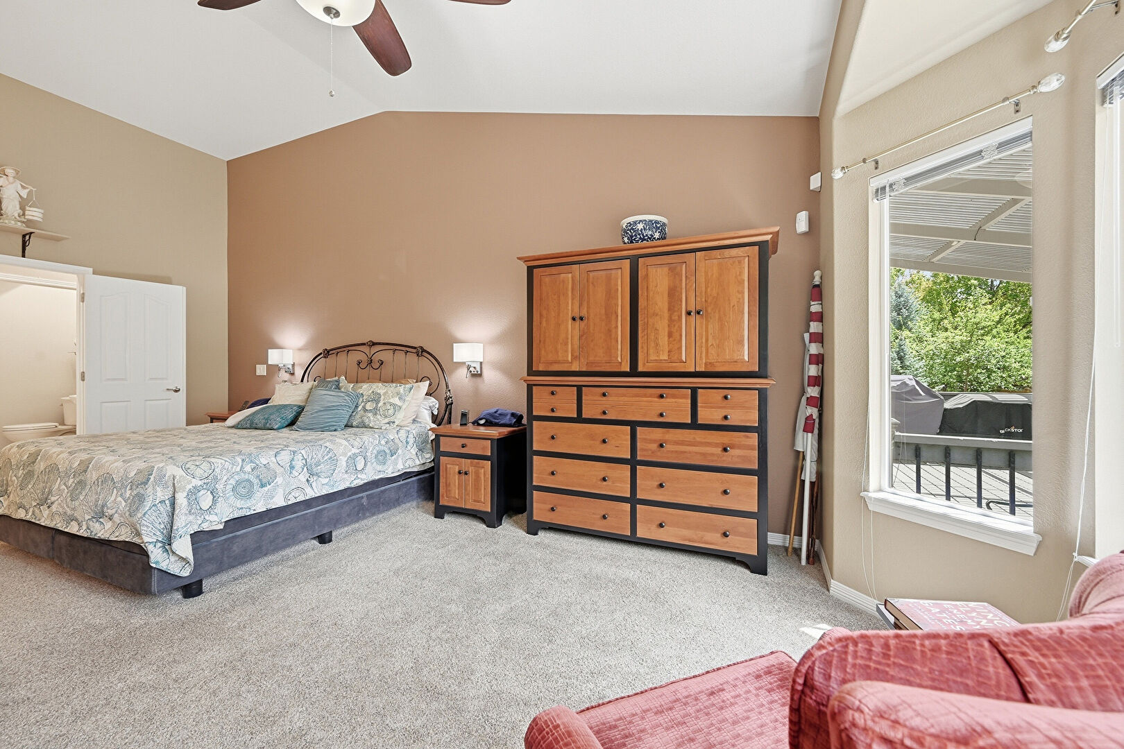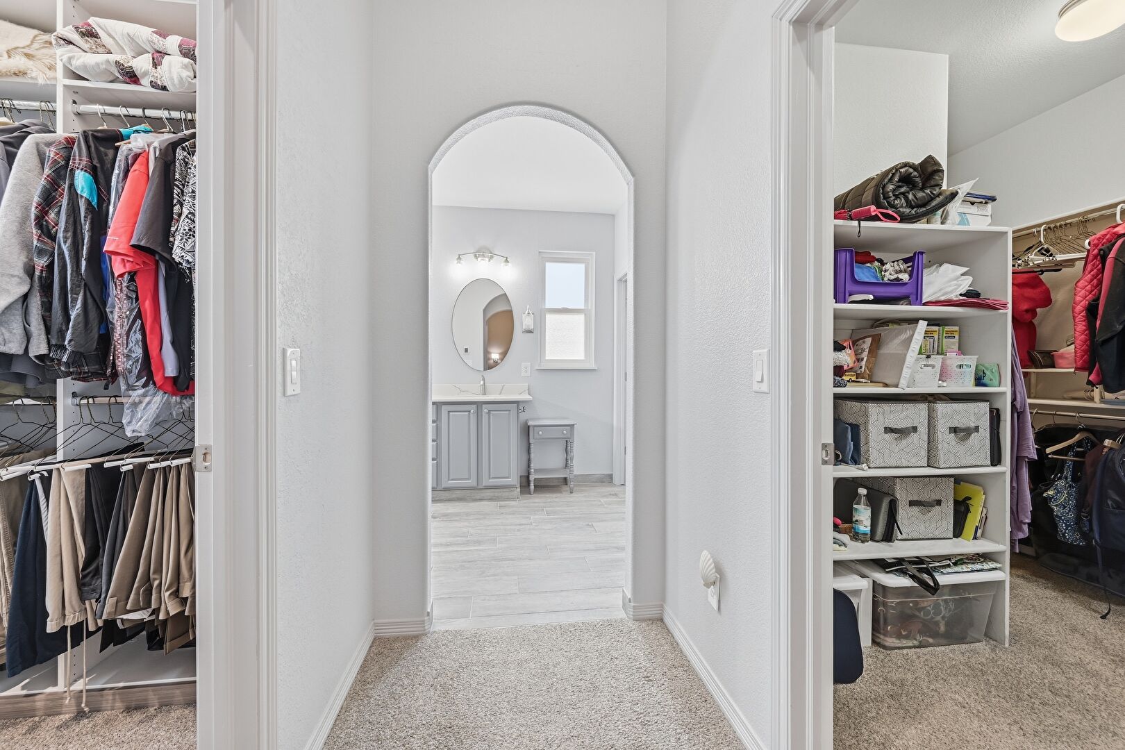 Arched Walkways, Baseboards Wall, Carpet, Cathedral Ceiling, Ceiling Fan, Drywall, High Ceiling, Natural Light, Vaulted Ceiling, Carpet, Vaulted Ceiling, Vent