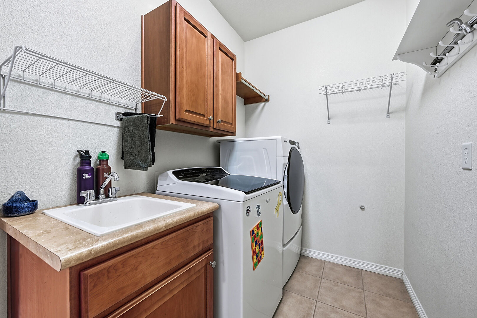 Baseboards Wall, Textured Wall, Tile Floor, Laundry
