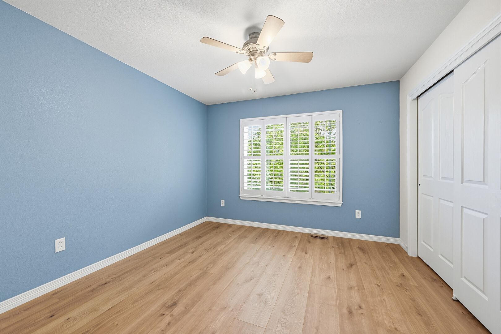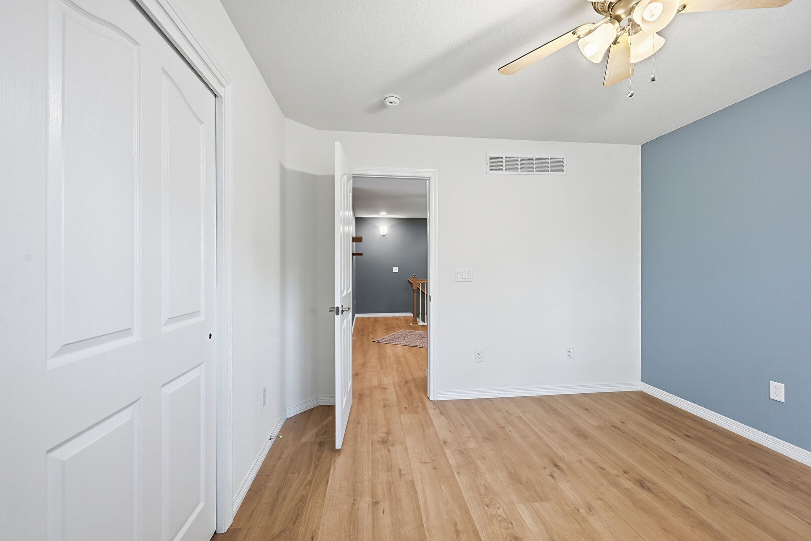 Baseboards Wall, Ceiling Fan, Closet, Drywall, Natural Light, Smoke Carbon Monoxide Detector, Vent, Wood Finish Floor, Drywall, Wood Finish Floor