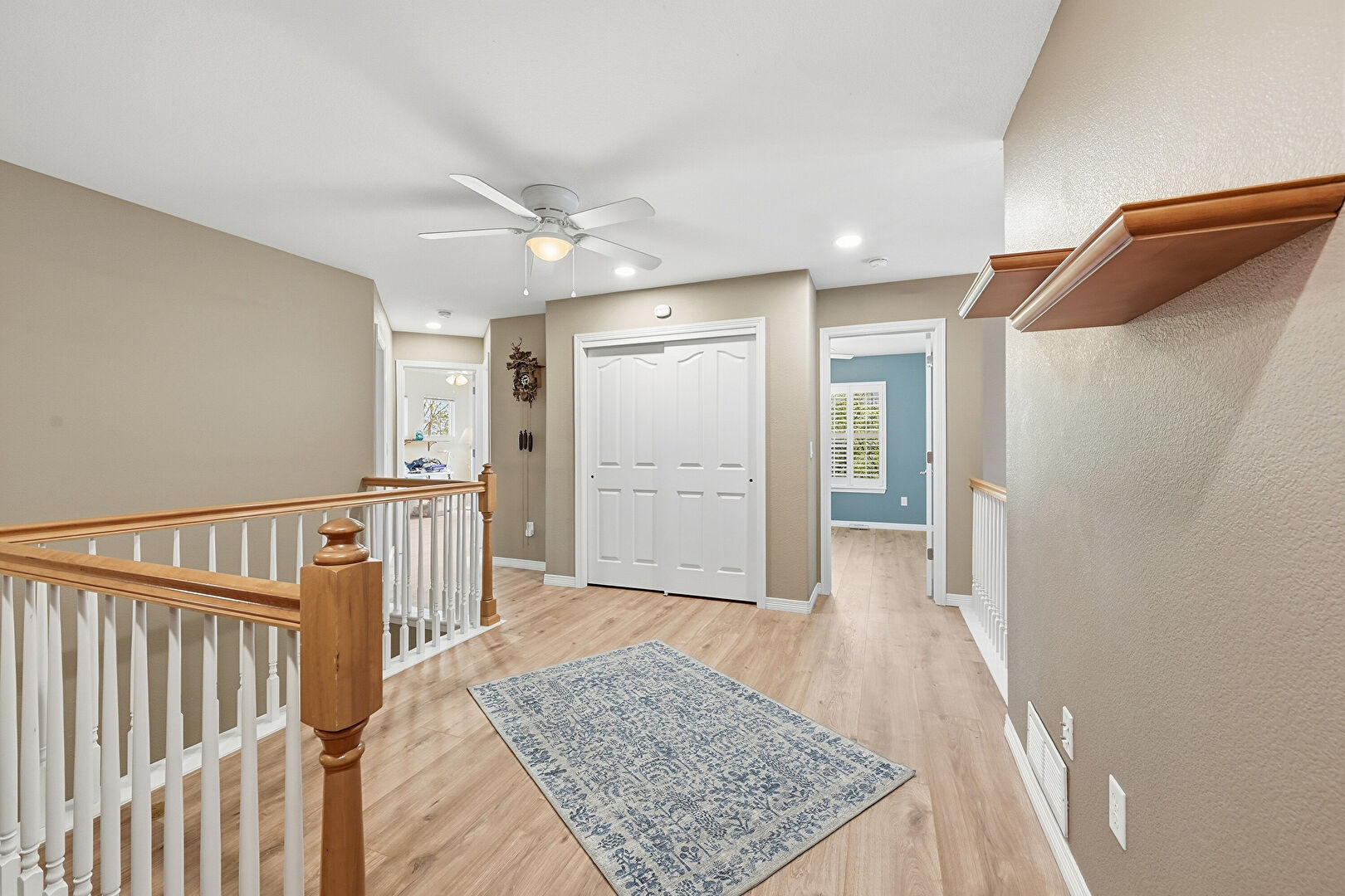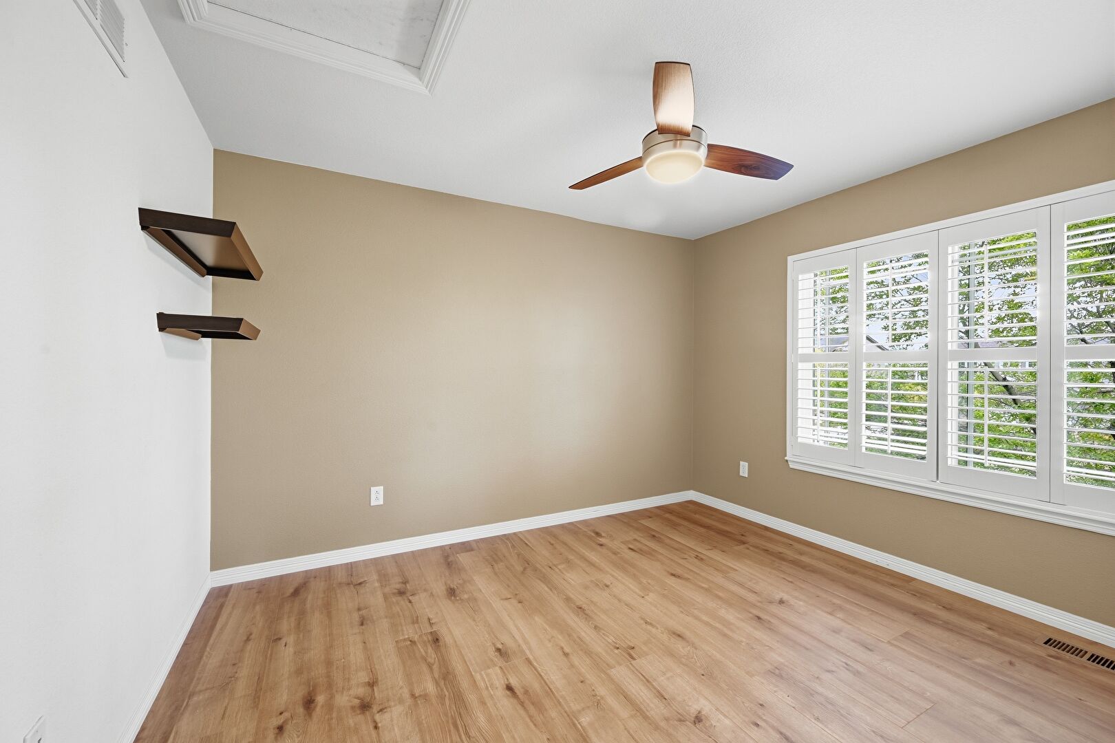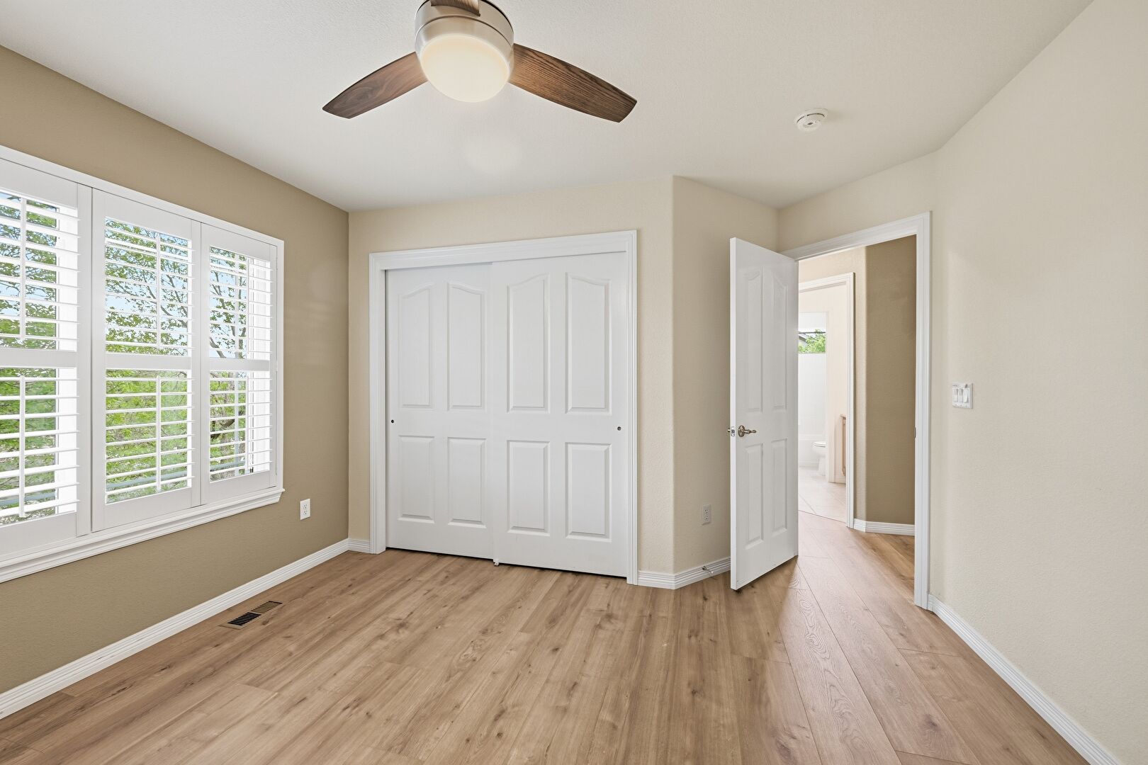 Baseboards Wall, Ceiling Fan, Closet, Drywall, Natural Light, Scuttle, Smoke Carbon Monoxide Detector, Vent, Wood Finish Floor, Natural Light, Wood Finish Floor