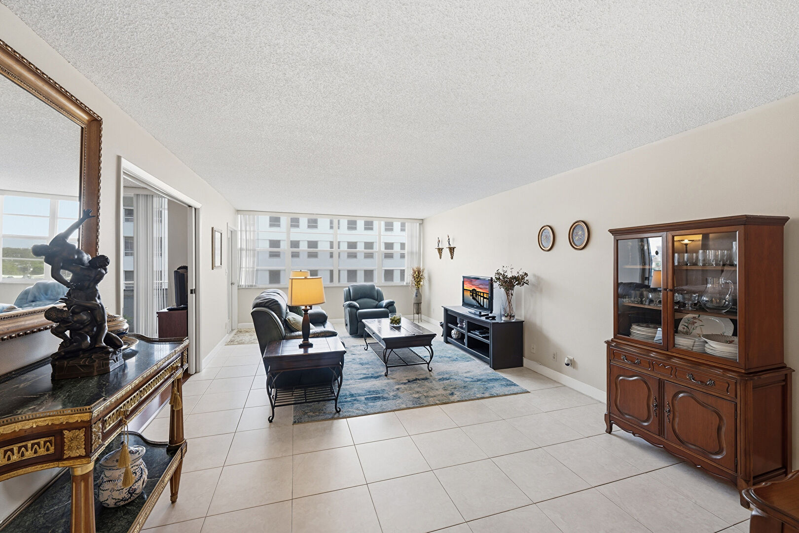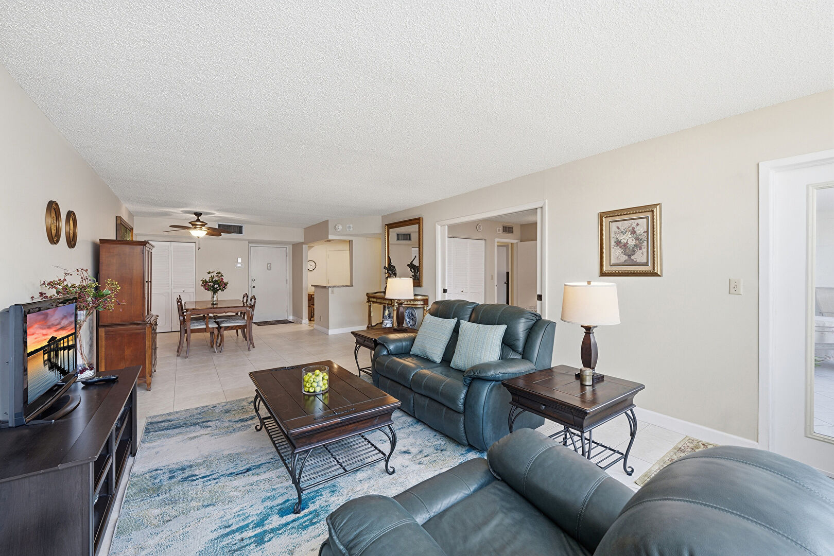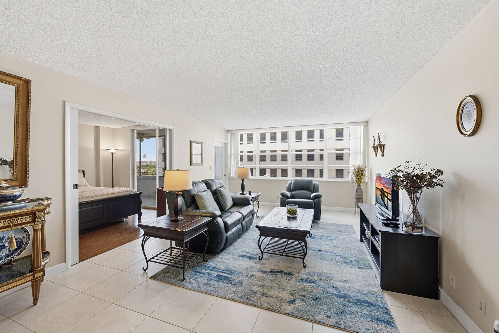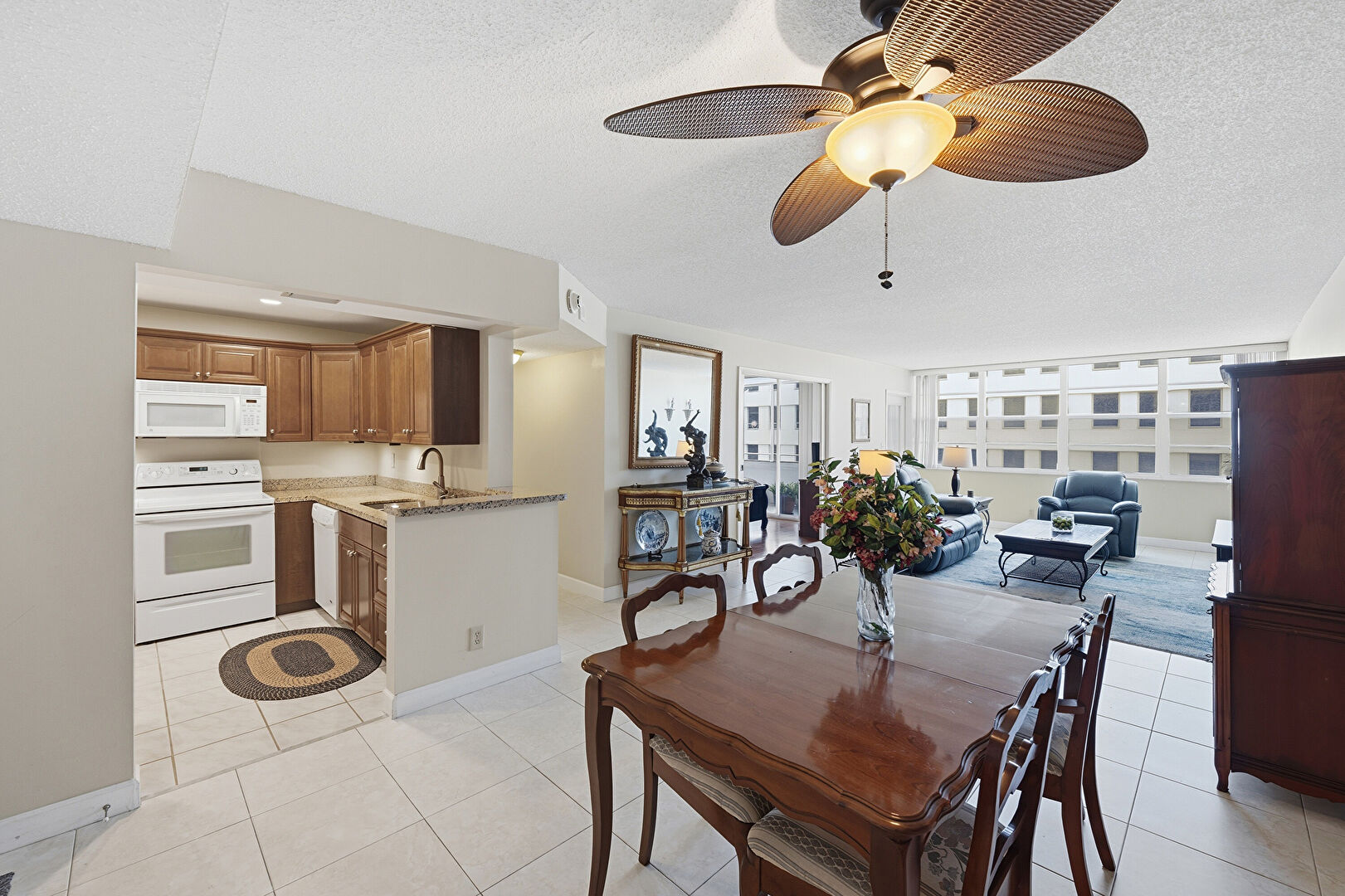 Ceiling Fan, City View, Drywall, Natural Light, Sunroom, Tile Floor, City View, Textured Ceiling