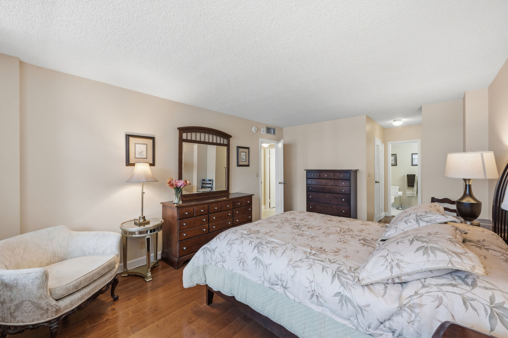 Access To Exterior, Baseboards Wall, Closet, Drywall, Ensuite Bathroom, Floor Ceiling Windows, Natural Light, Smoke Carbon Monoxide Detector, Textured Ceiling, Vent, Wood Finish Floor, Access To Exterior, Baseboards Wall, Smoke Carbon Monoxide Detector, Vent, Wood Finish Floor
