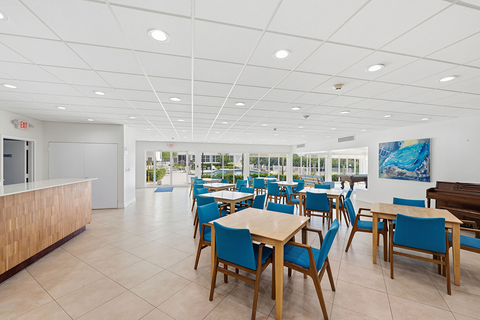 Baseboards Wall, Ceiling Fan, Drop Ceiling, Drywall, Natural Light, Recessed Lighting, Smoke Carbon Monoxide Detector, Textured Ceiling, Tile Floor, Vent, Baseboards Wall, Drywall, Tile Floor