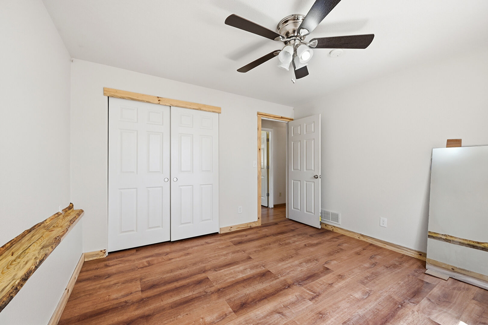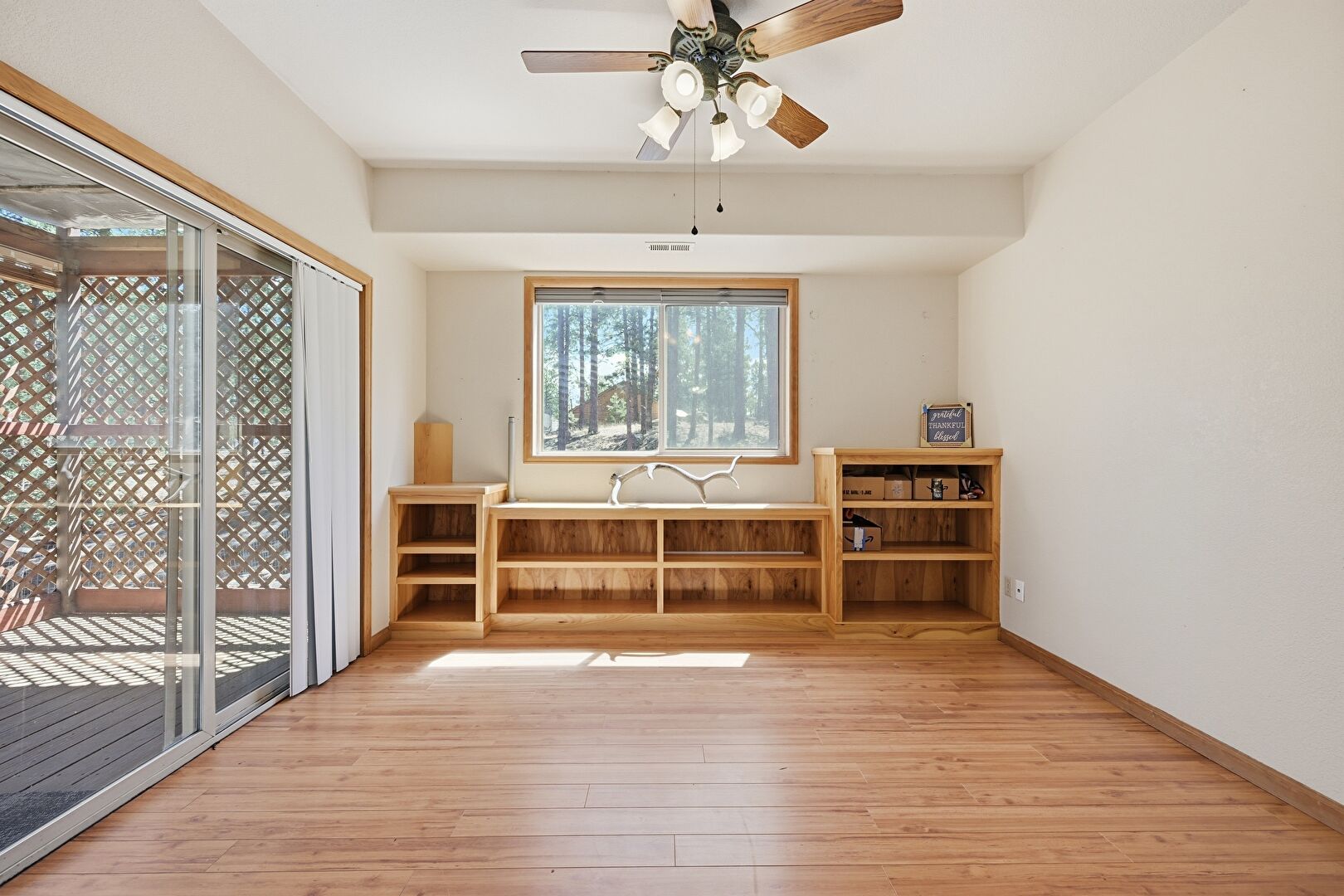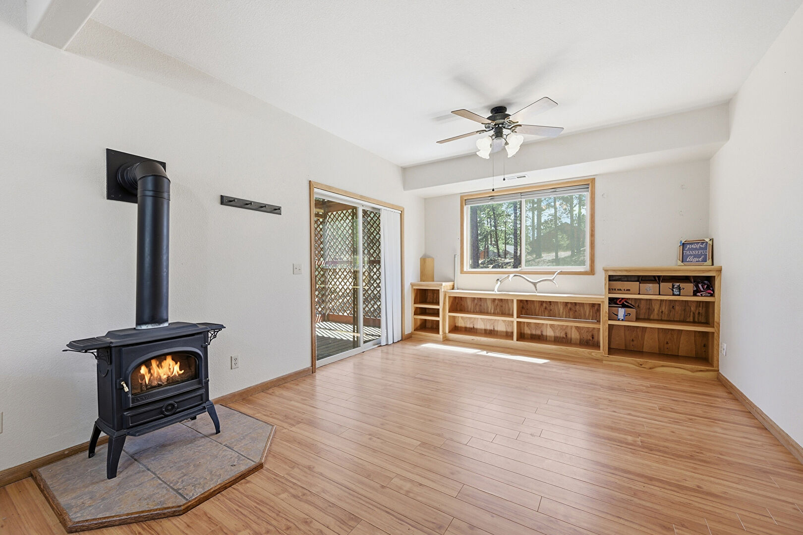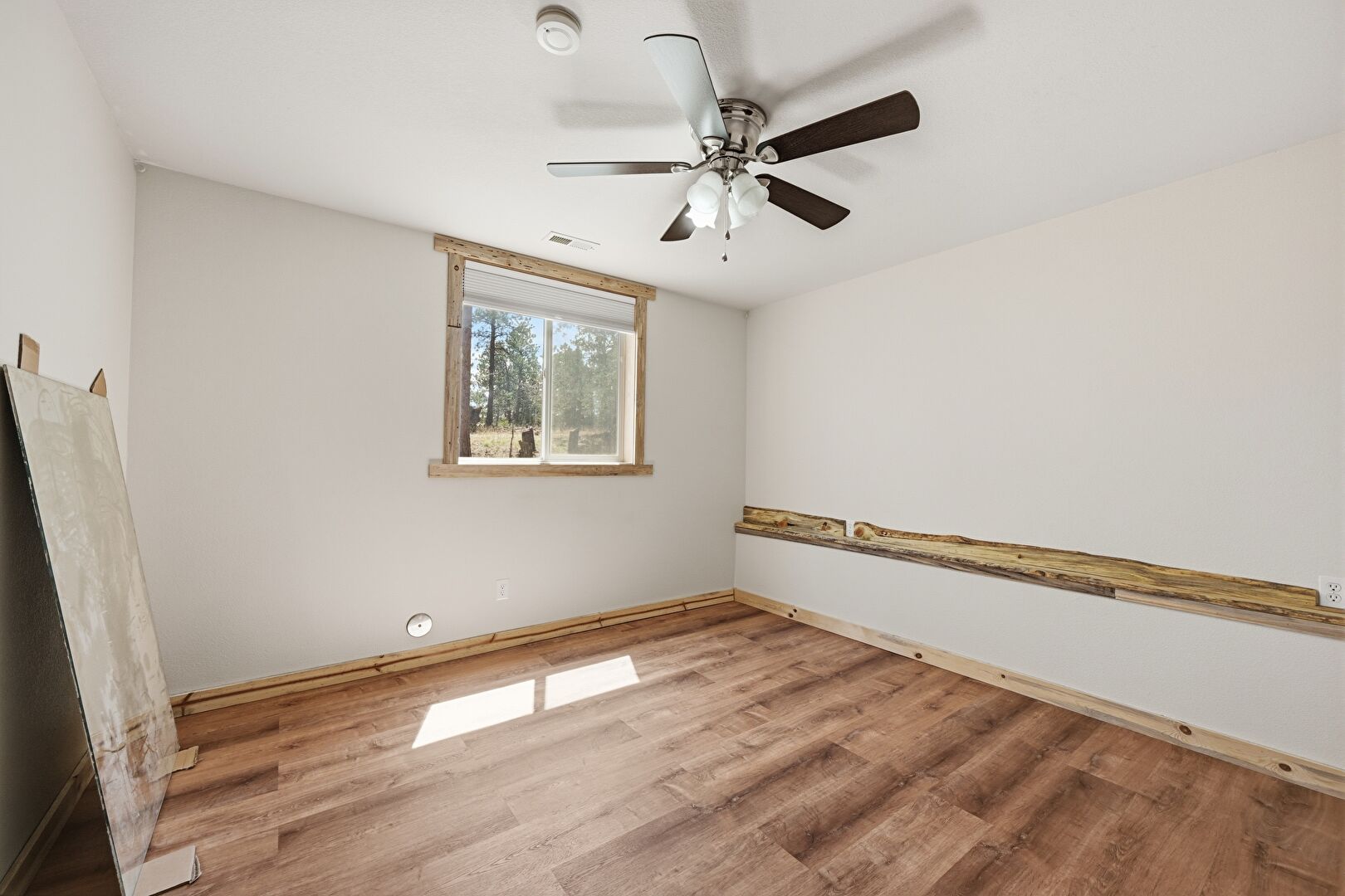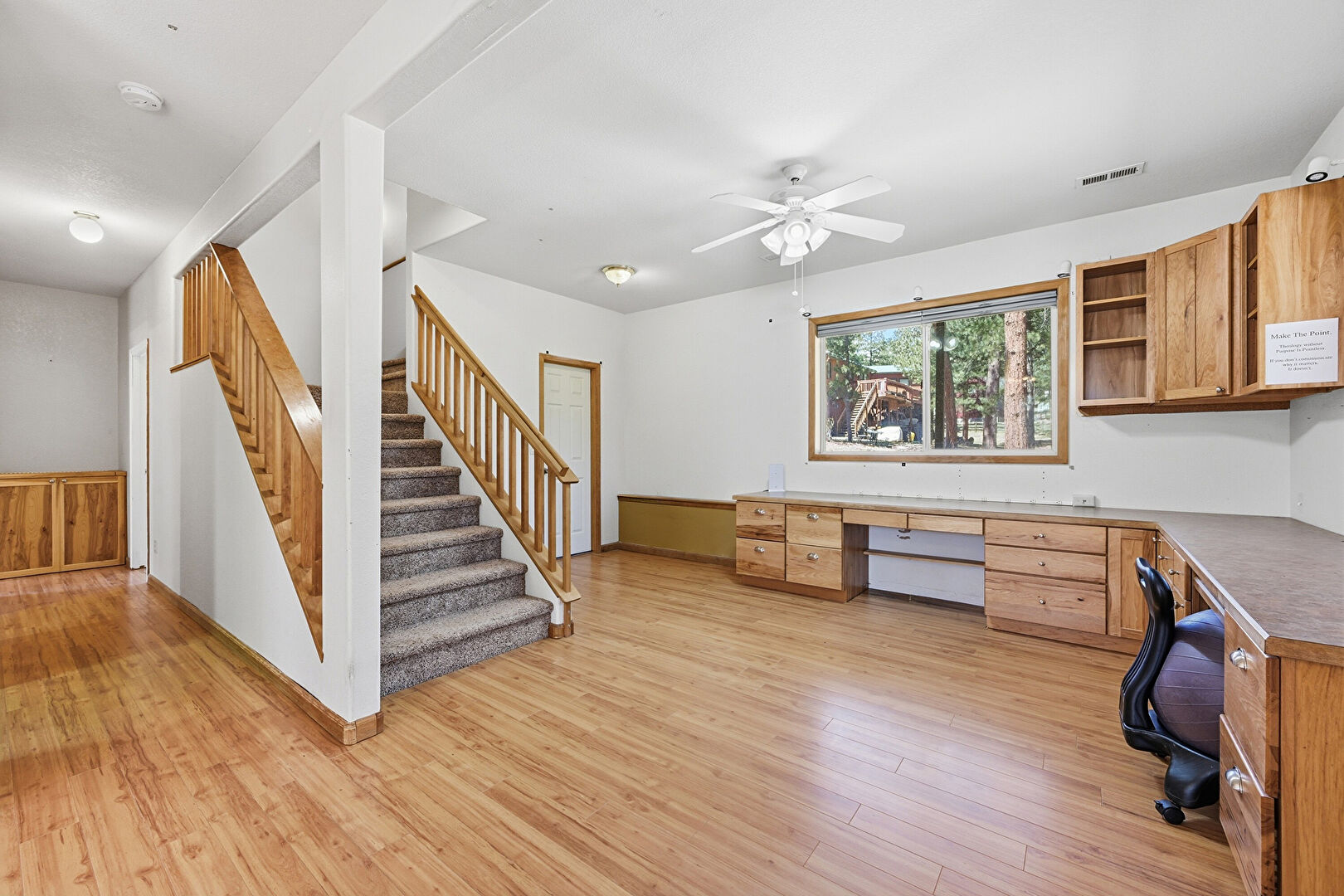 Baseboards Wall, Built In Desk, Ceiling Fan, Drywall, Natural Light, Office Area, Security Camera, Vent, Wood Finish Floor, Wood Stove, Smoke Carbon Monoxide Detector, Wood Finish Floor