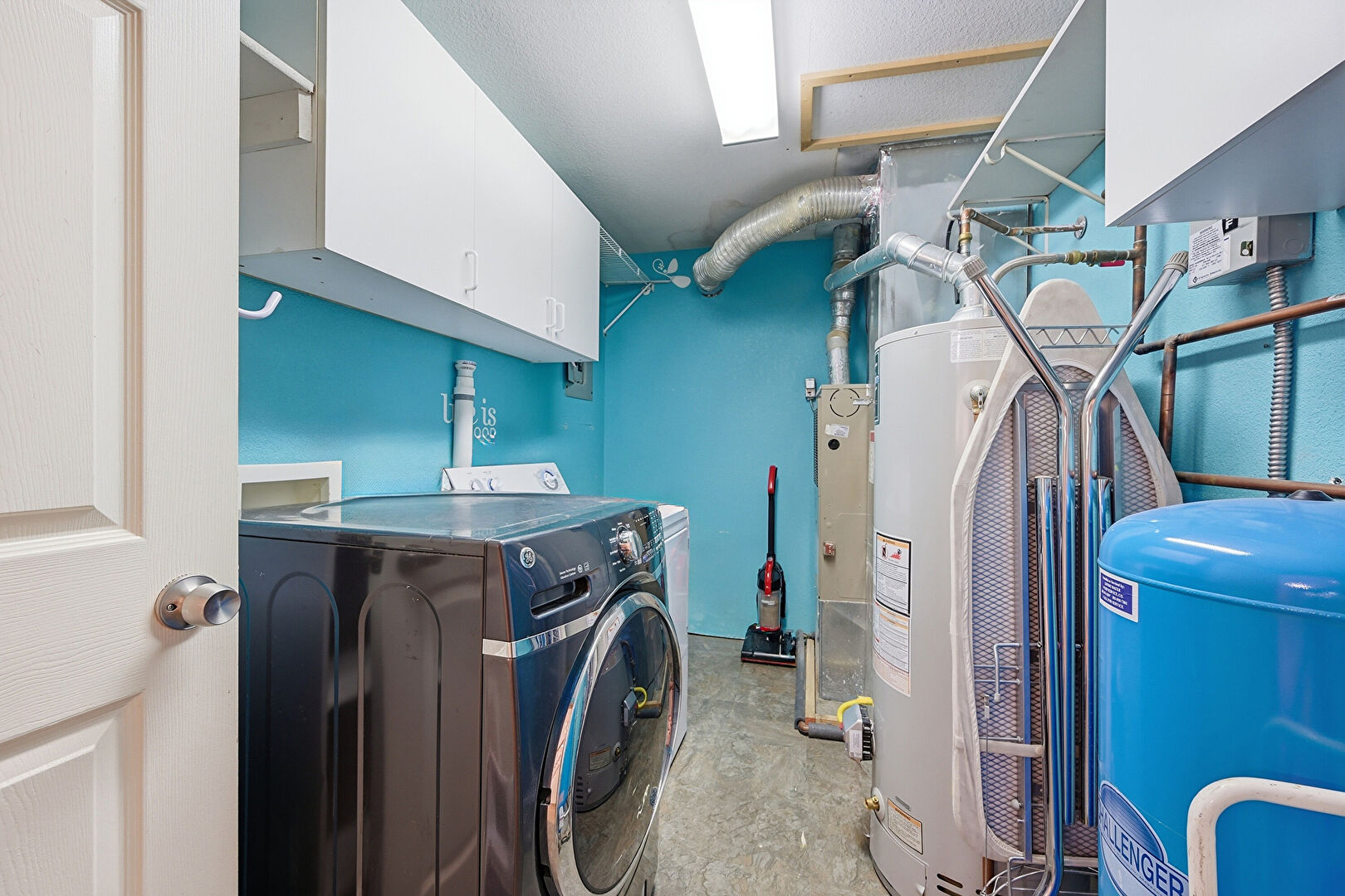Concrete Floor, Laundry, Washer Hookup, Water Heater, Water Pressure Tank, Drywall