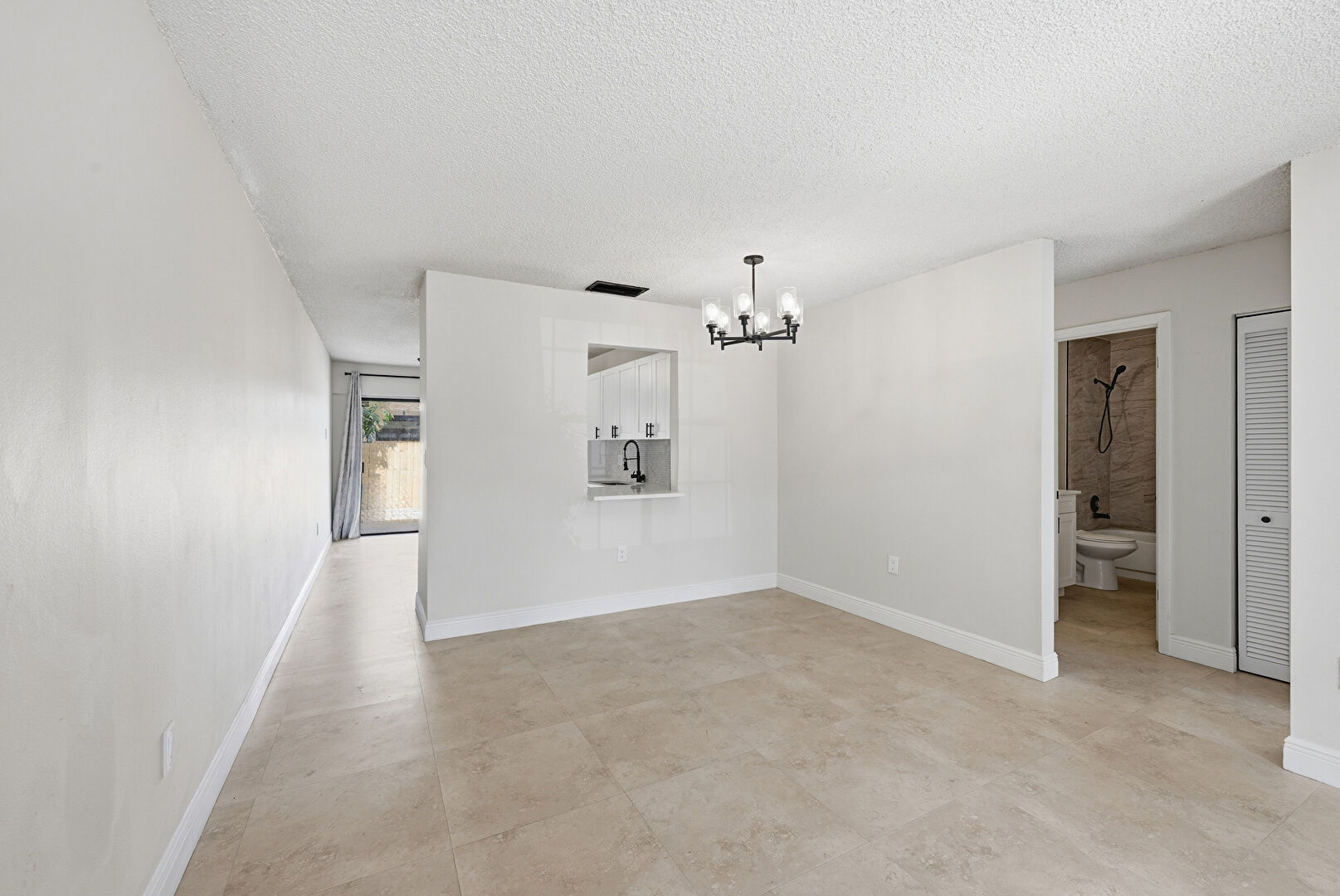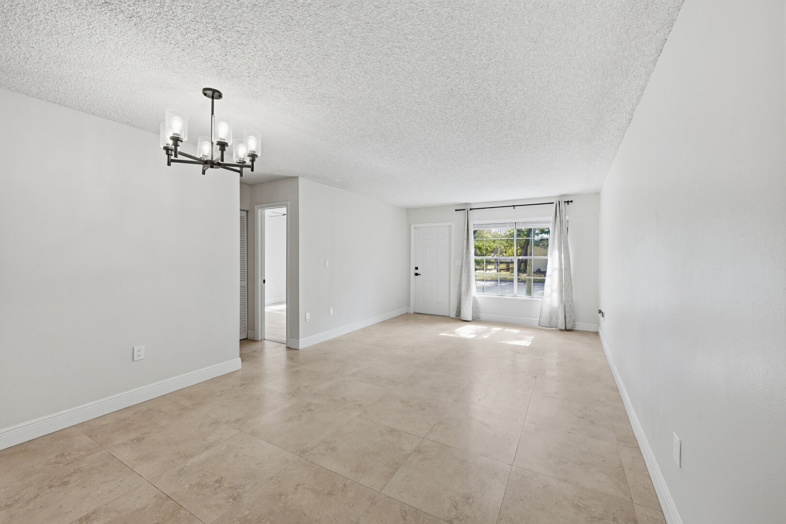 Baseboards Wall, Concrete Floor, Drywall, Natural Light, Notable Chandelier, Textured Ceiling, Vinyl Floor, Baseboards Wall, Concrete Floor, Drywall, Textured Ceiling