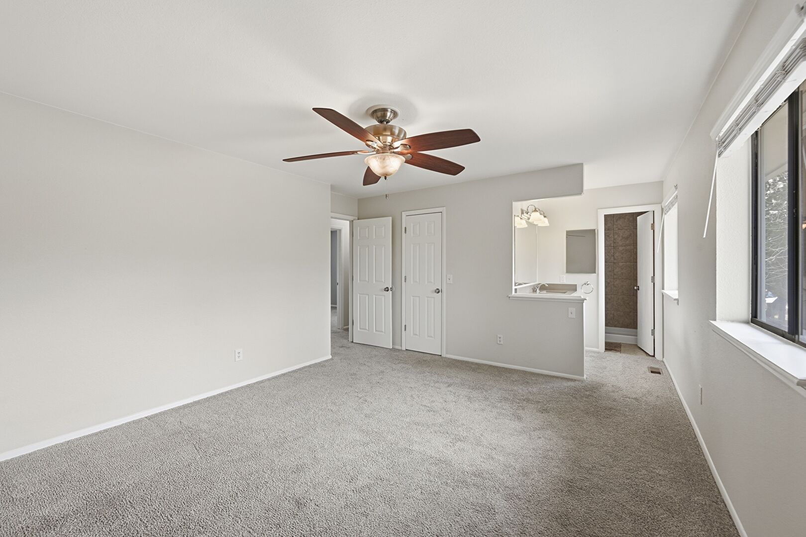 Baseboards Wall, Carpet, Ceiling Fan, Drywall, Ensuite Bathroom, Natural Light, Vent, Ceiling Fan, Natural Light