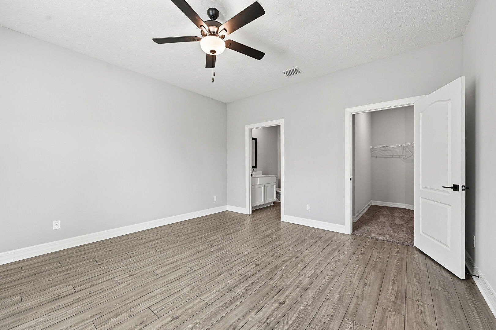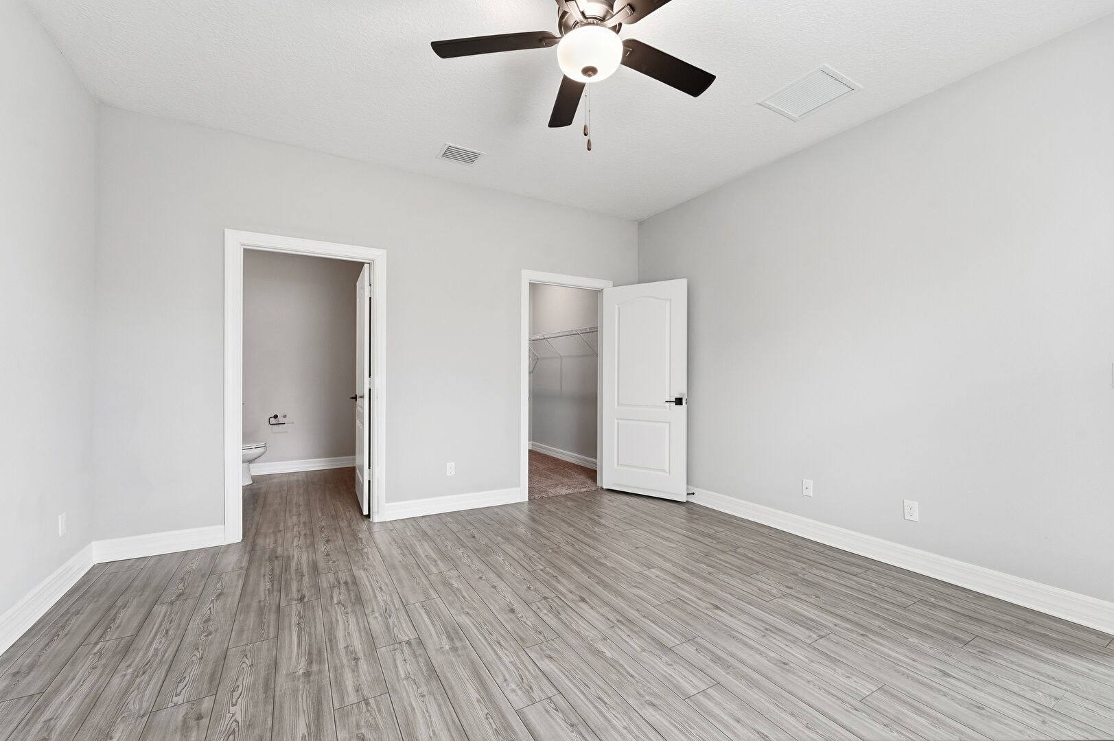 Baseboards Wall, Ceiling Fan, Drywall, Ensuite Bathroom, Natural Light, Smoke Carbon Monoxide Detector, Textured Ceiling, Vent, Walk In Closet, Wood Finish Floor, Drywall, Ensuite Bathroom, Wood Finish Floor
