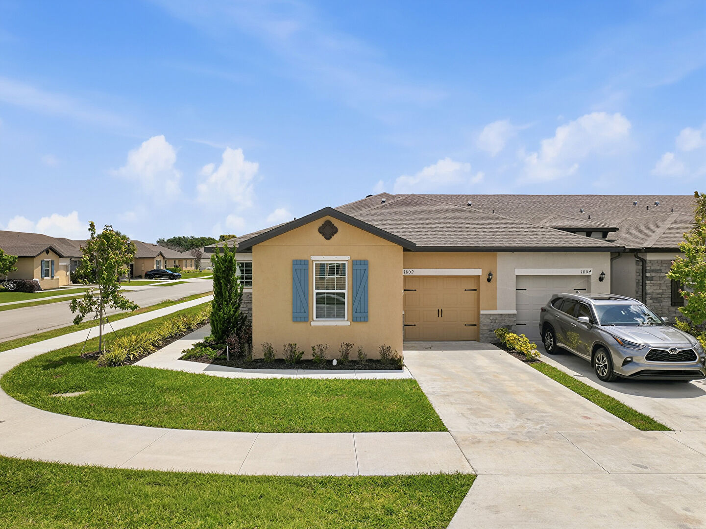 Driveway, Lawn, Residential View, Stucco Siding