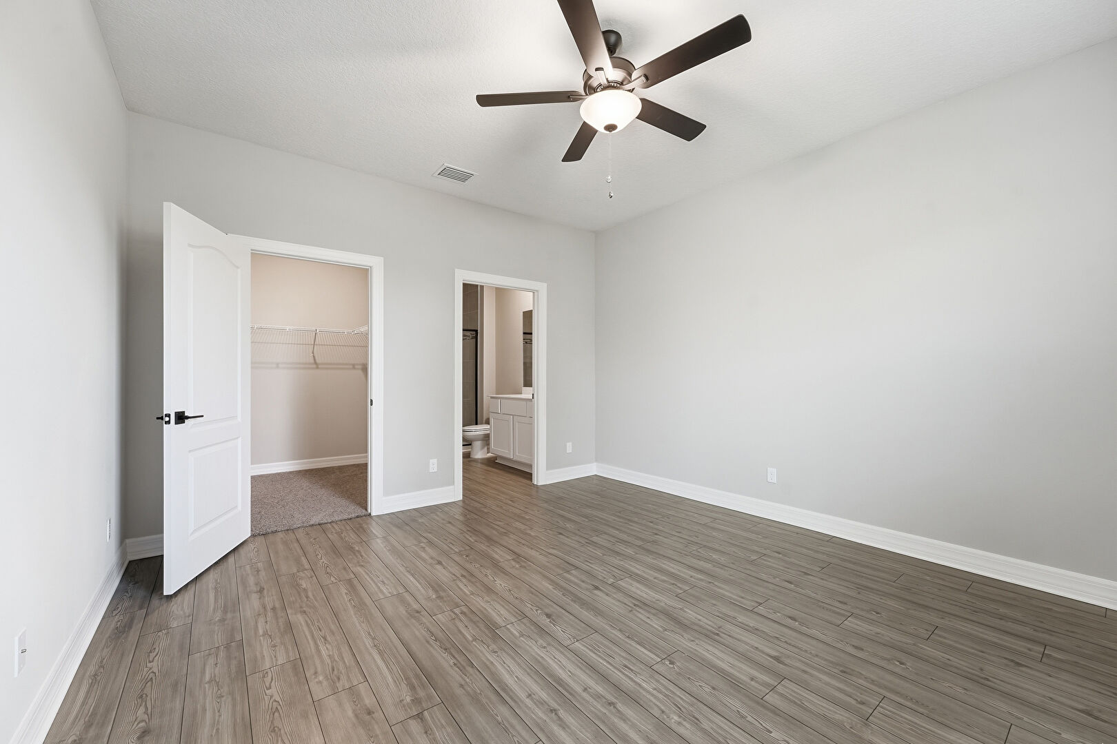 Baseboards Wall, Ceiling Fan, Drywall, Ensuite Bathroom, Natural Light, Scuttle, Smoke Carbon Monoxide Detector, Textured Ceiling, Vent, Walk In Closet, Wood Finish Floor, Baseboards Wall, Drywall, Textured Ceiling