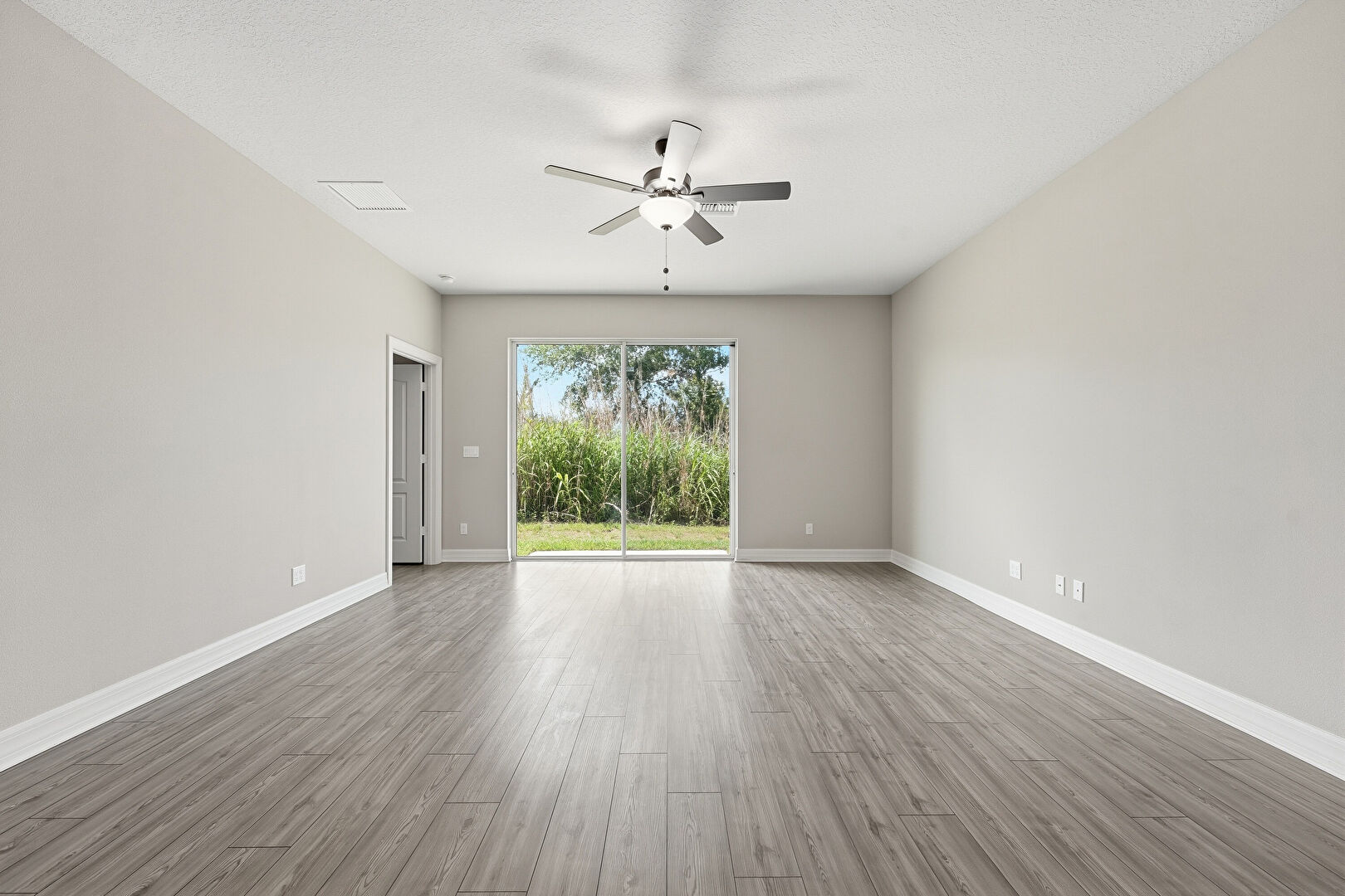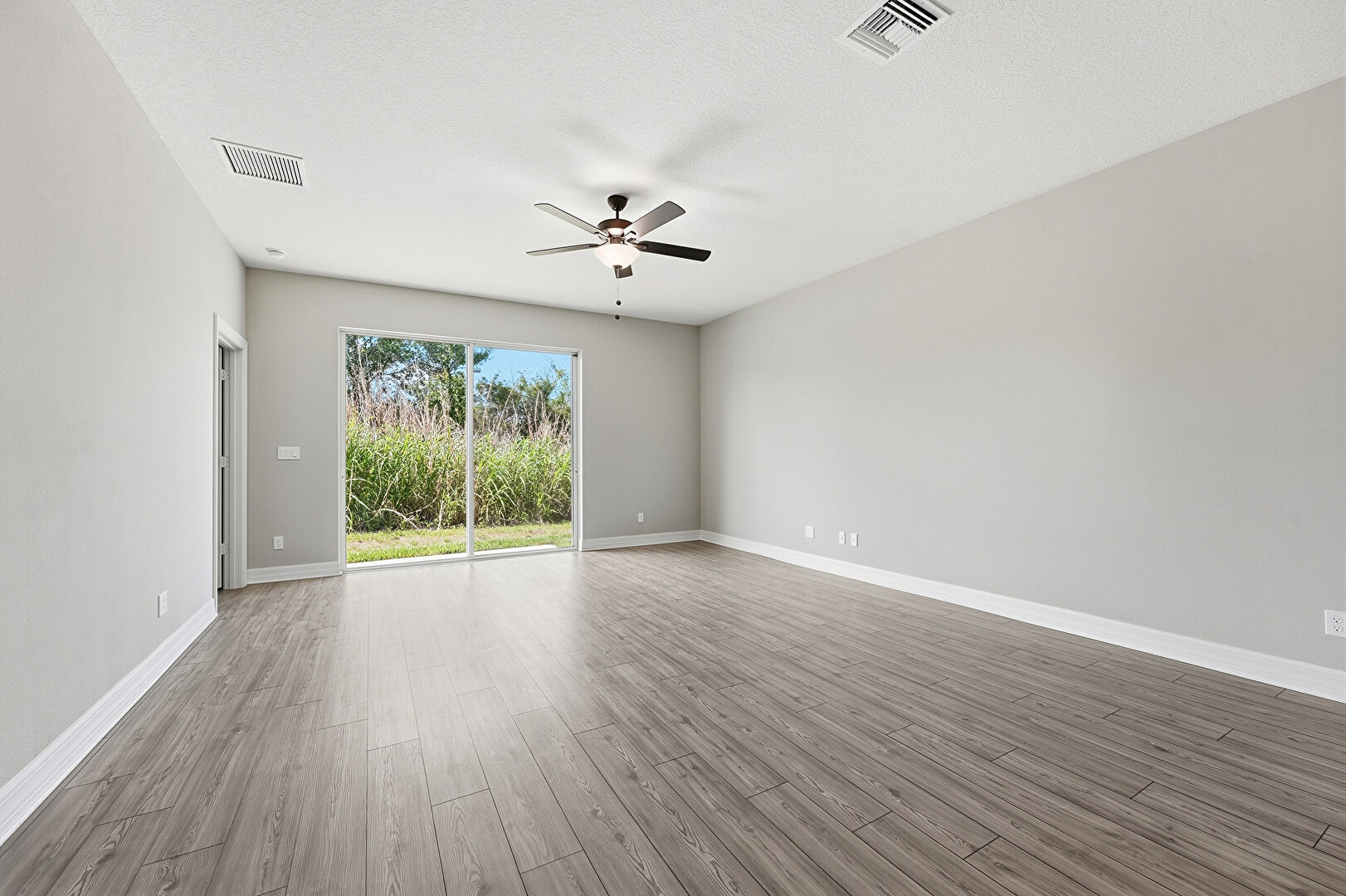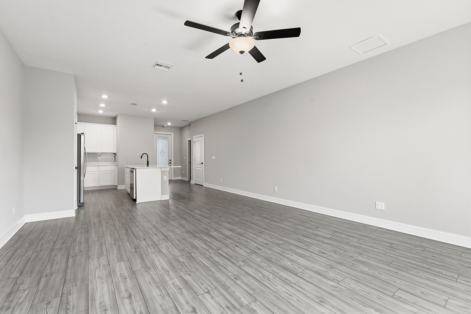 Baseboards Wall, Ceiling Fan, Drywall, Natural Light, Recessed Lighting, Vent, Wood Finish Floor, Textured Ceiling, Wood Finish Floor