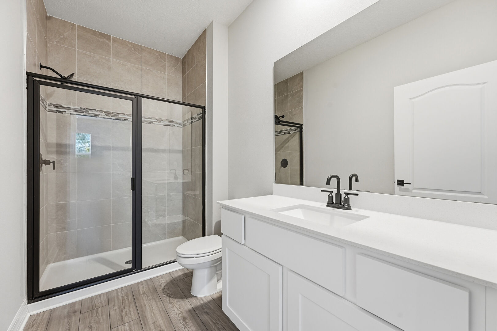 Full Bathroom, Vanity, Wood Finish Floor, Drywall