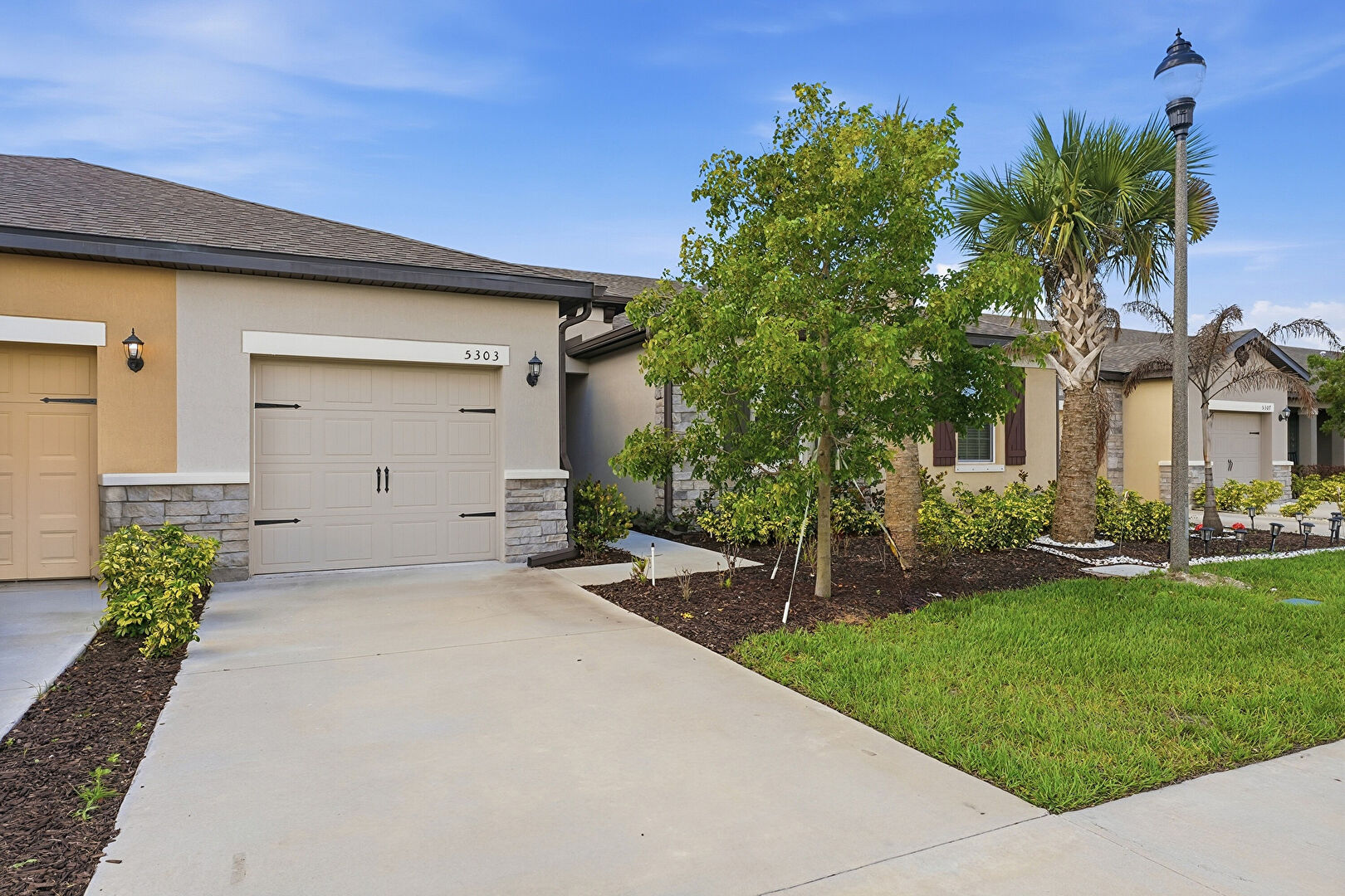 Downspout, Driveway, Electric Meter, Lawn, Shingle Roof, Stone Siding, Stucco Siding, Water Meter, Woods View, Driveway, Gutters, Stone Siding