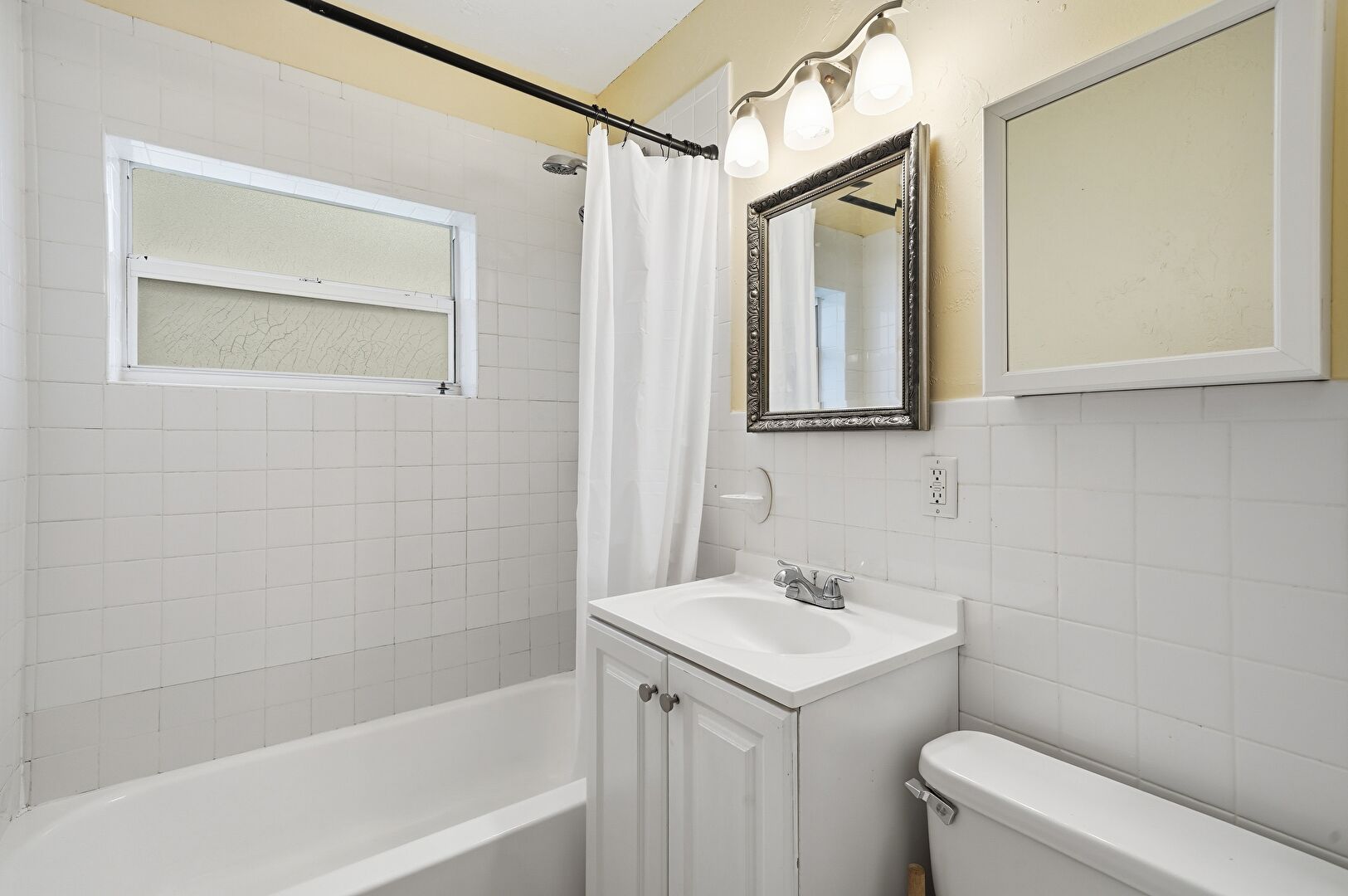 Combined Bath Shower, Tile Wall, Vanity, Full Bathroom