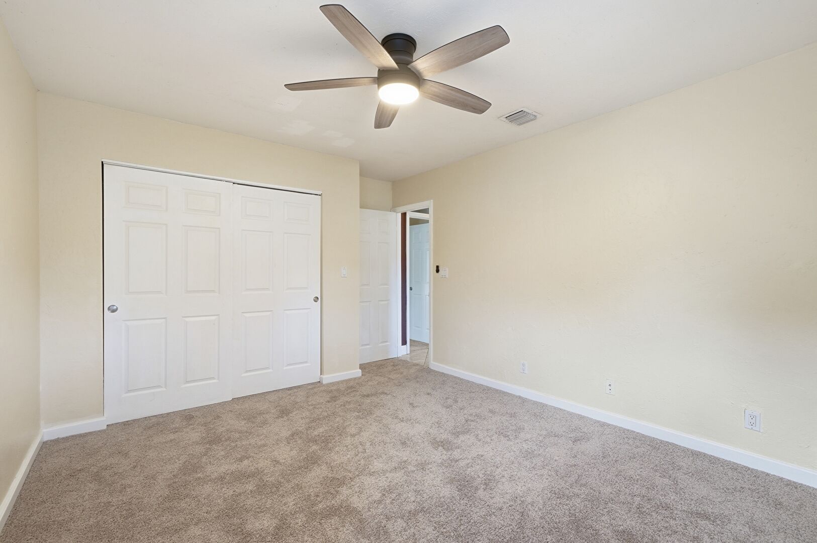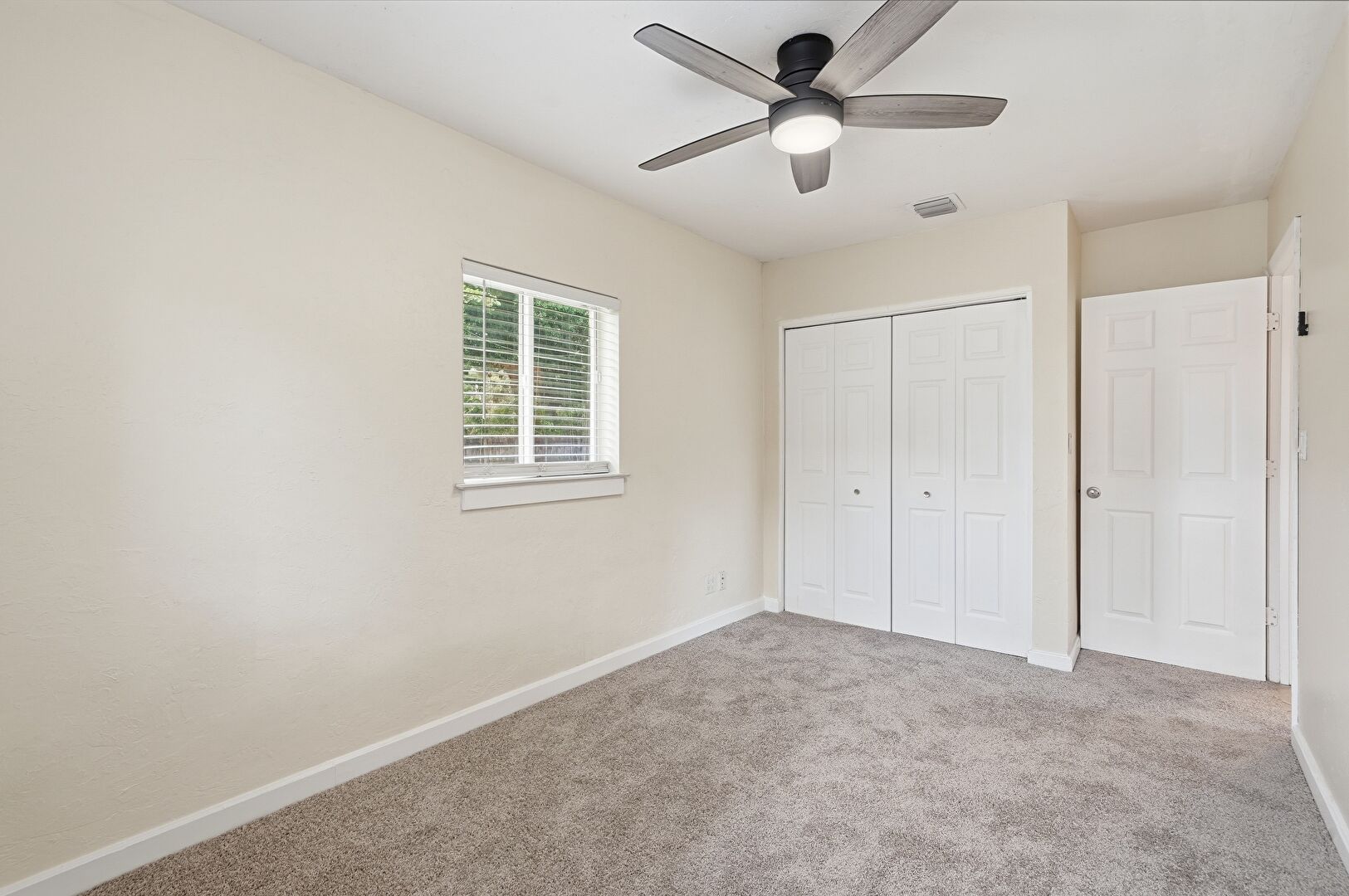 Carpet, Ceiling Fan, Closet, Drywall, Natural Light, Vent, Baseboards Wall