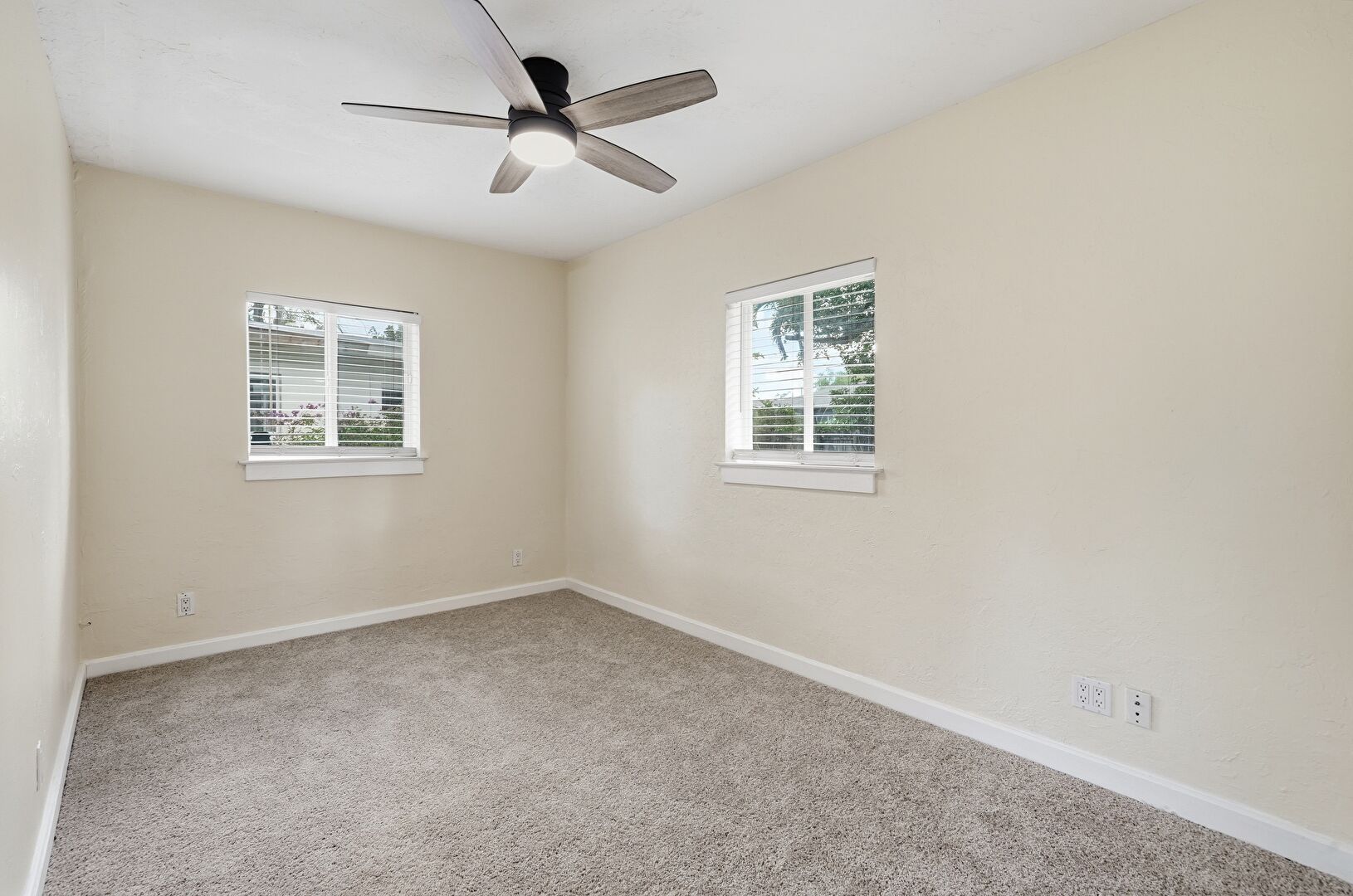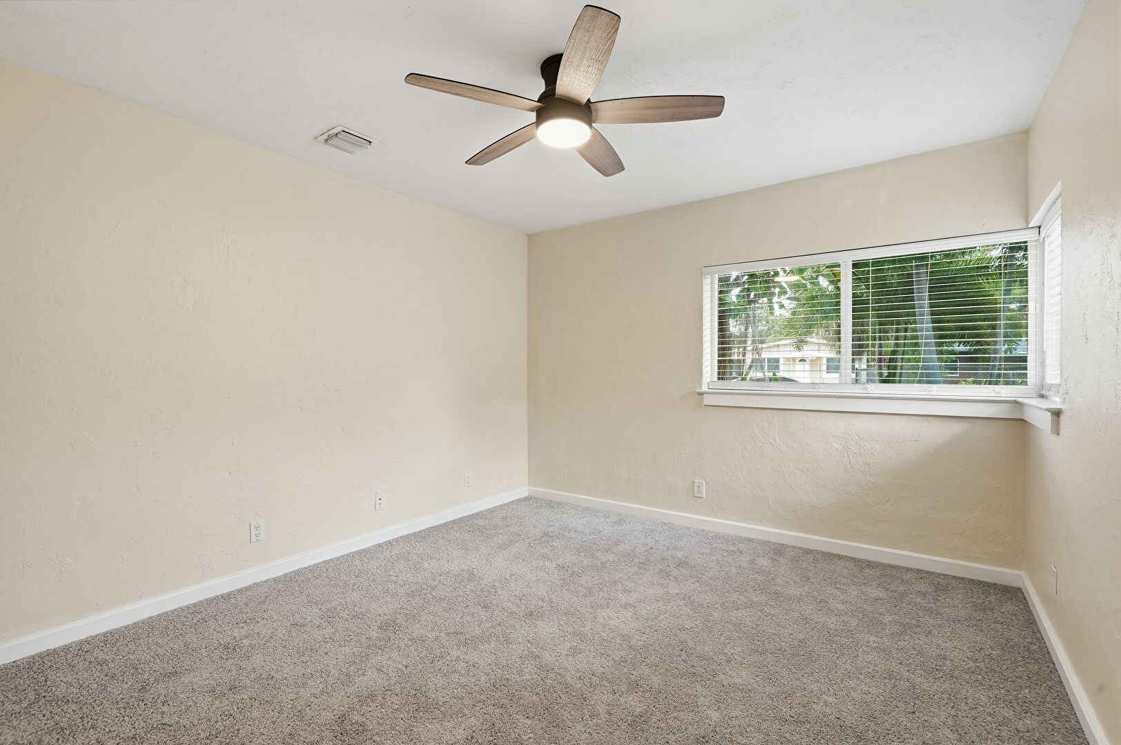 Baseboards Wall, Carpet, Ceiling Fan, Closet, Drywall, Natural Light, Textured Wall, Ceiling Fan, Vent