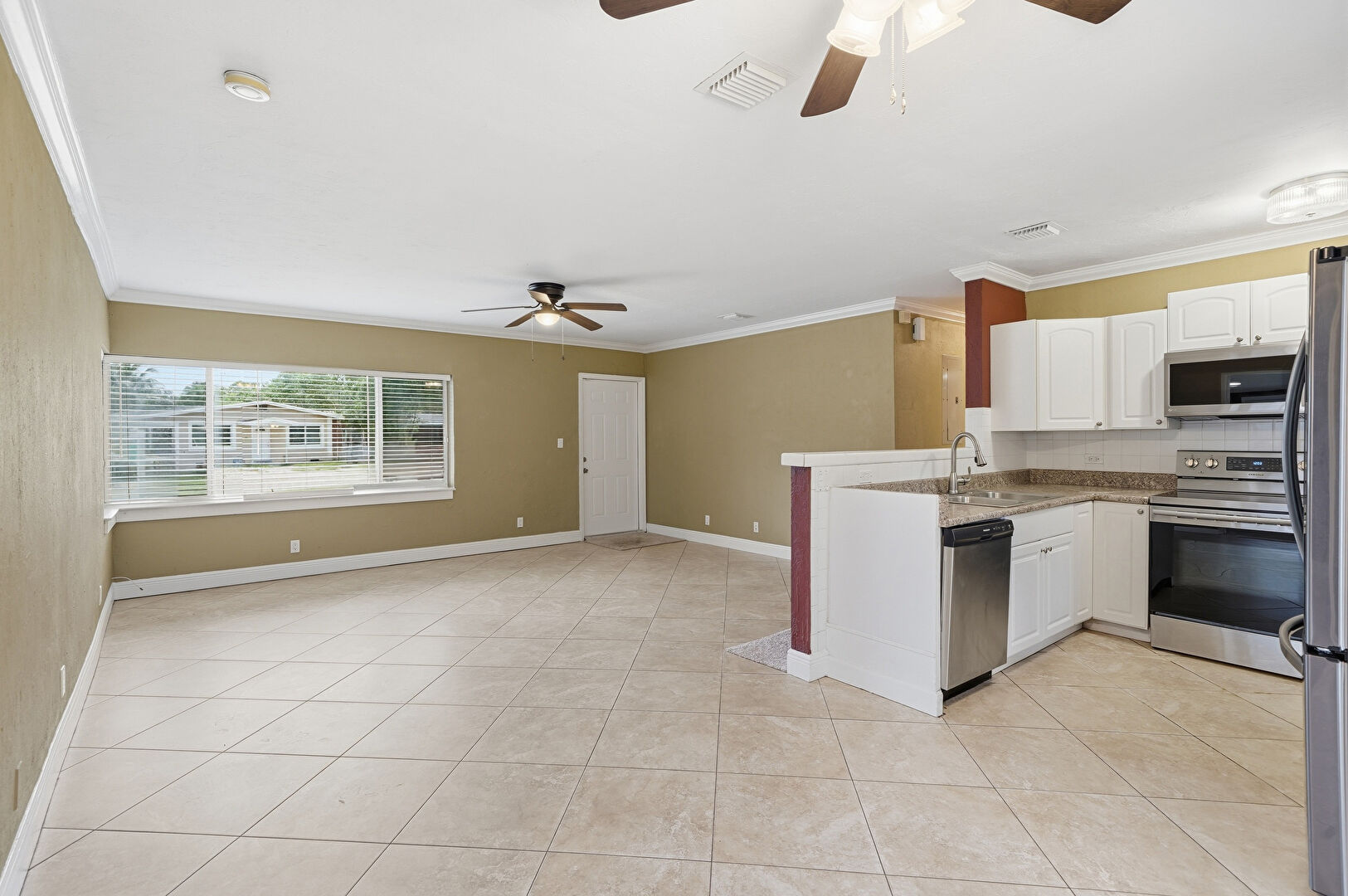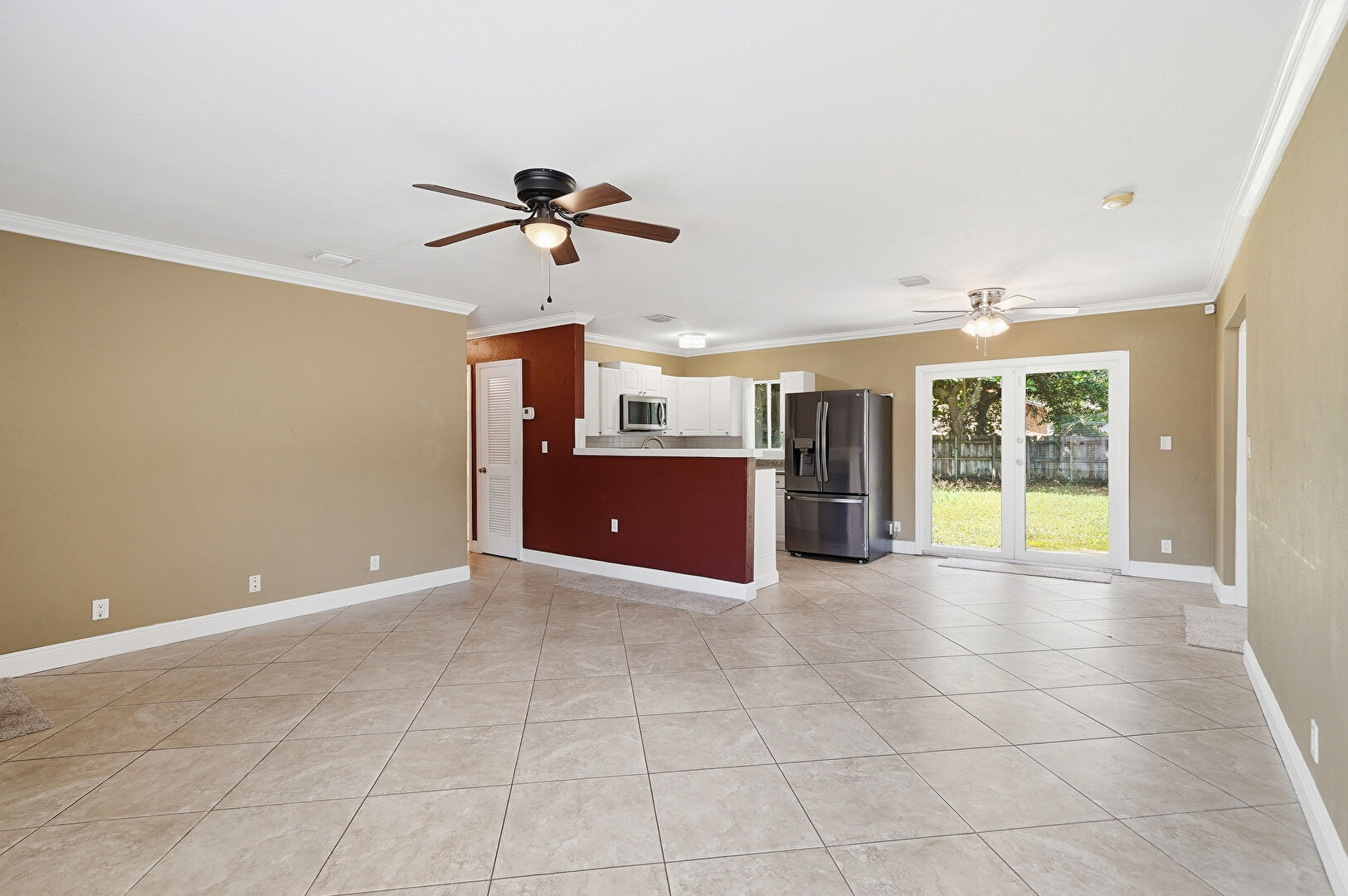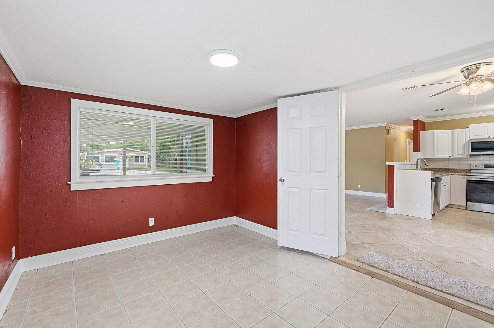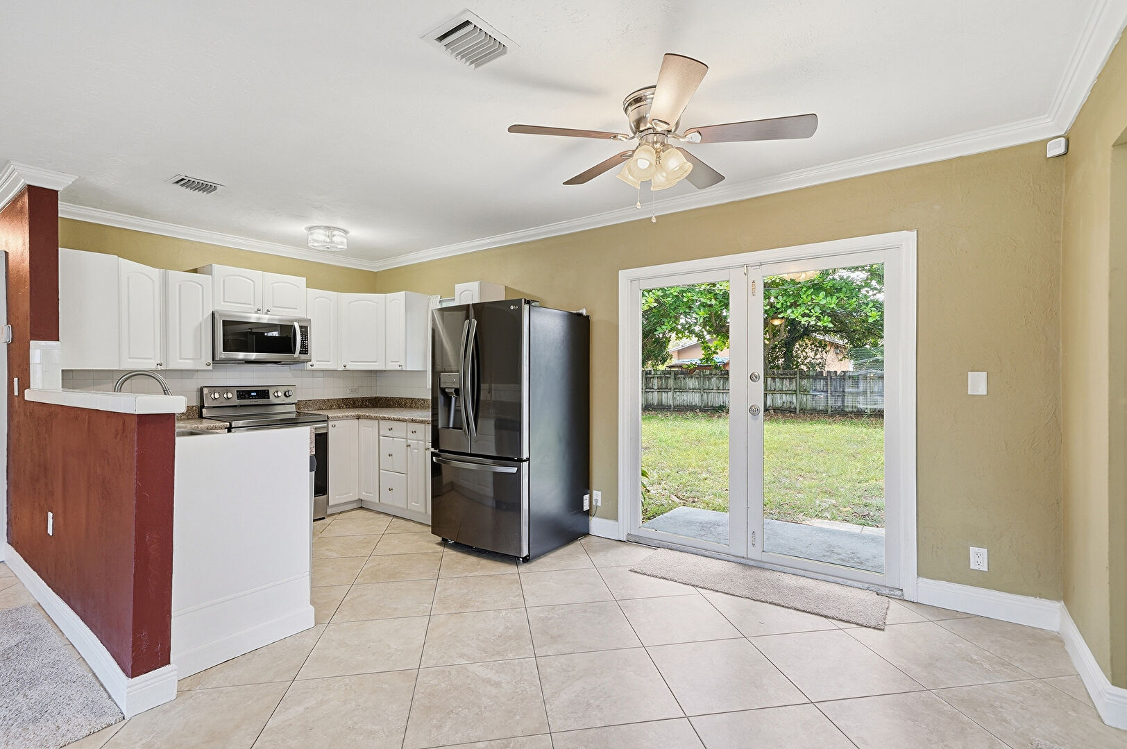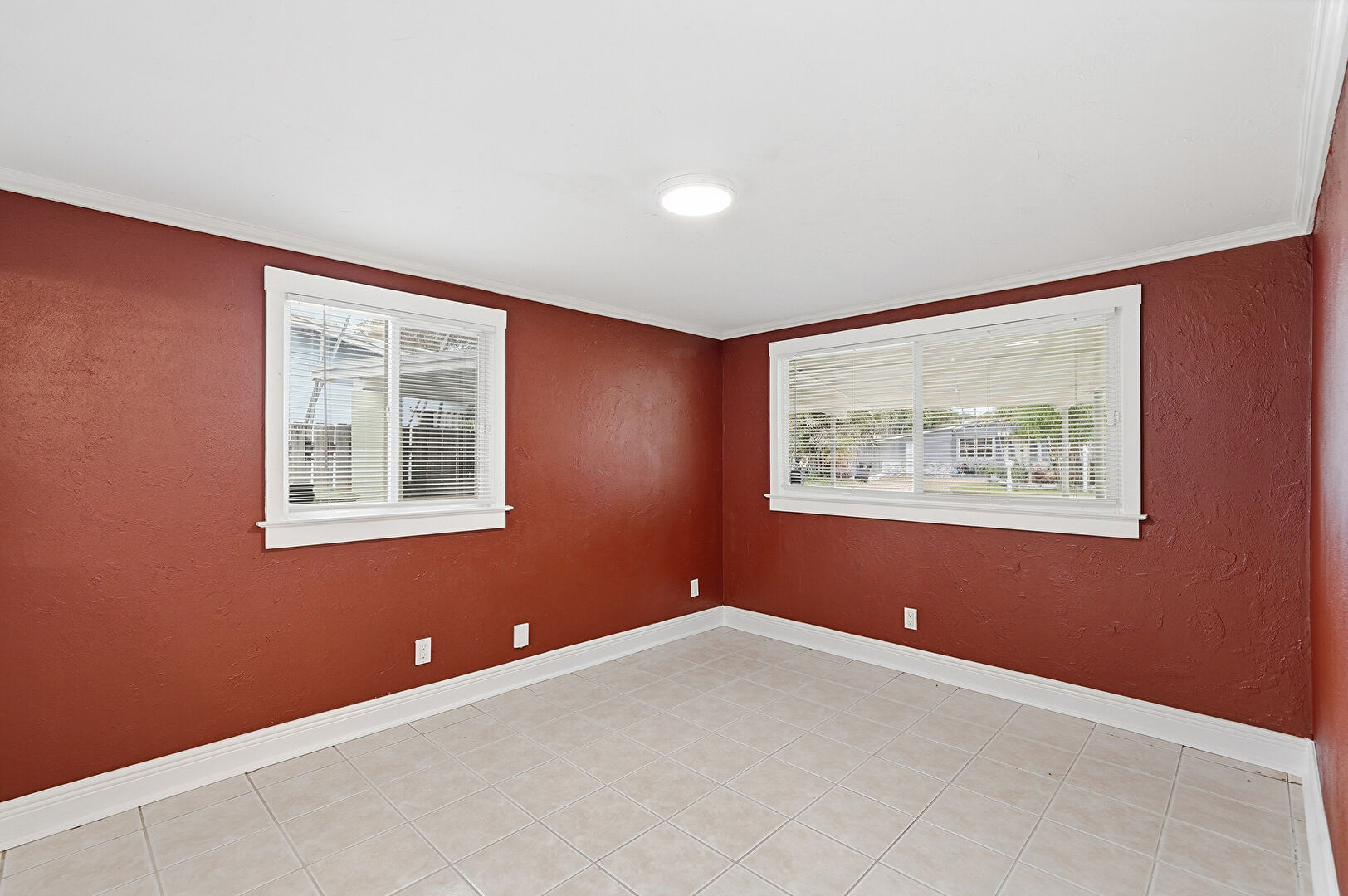 Baseboards Wall, Ceiling Fan, Crown Molding, Natural Light, Textured Wall, Tile Floor, Vent, Baseboards Wall, Natural Light