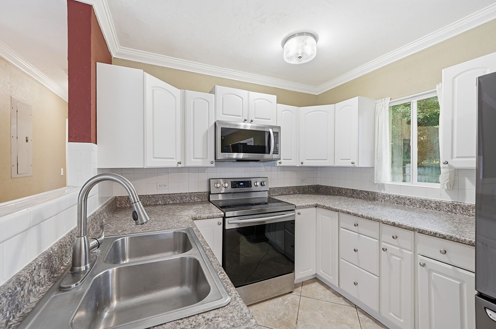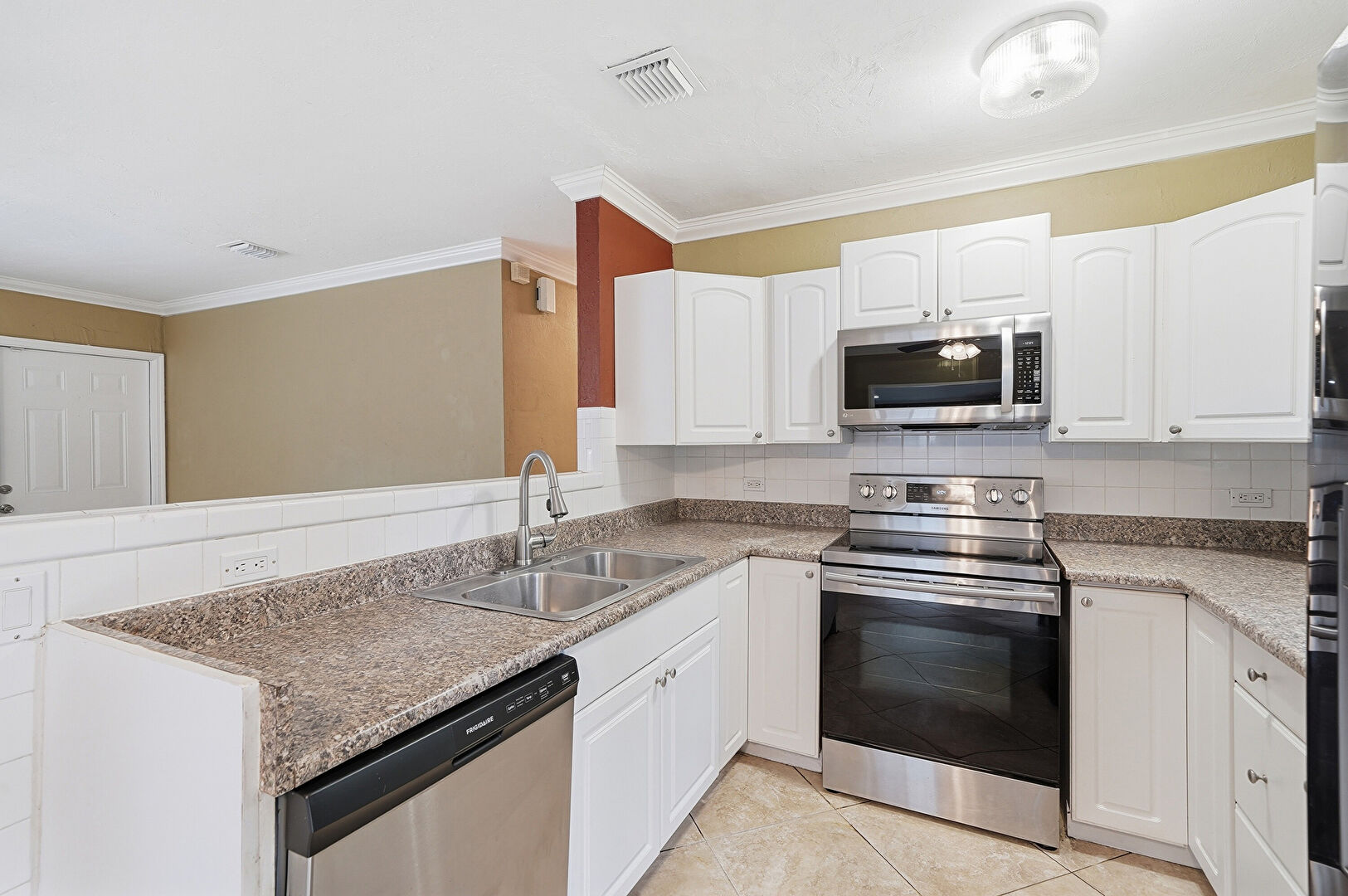 Arched Cabinets, Baseboards Wall, Ceiling Fan, Crown Molding, Drywall, Electric Panel, Kitchen Peninsula, Natural Light, Raised Cabinets, Stone Countertops, Tile Floor, Vent, Stone Countertops, Tile Floor, Vent