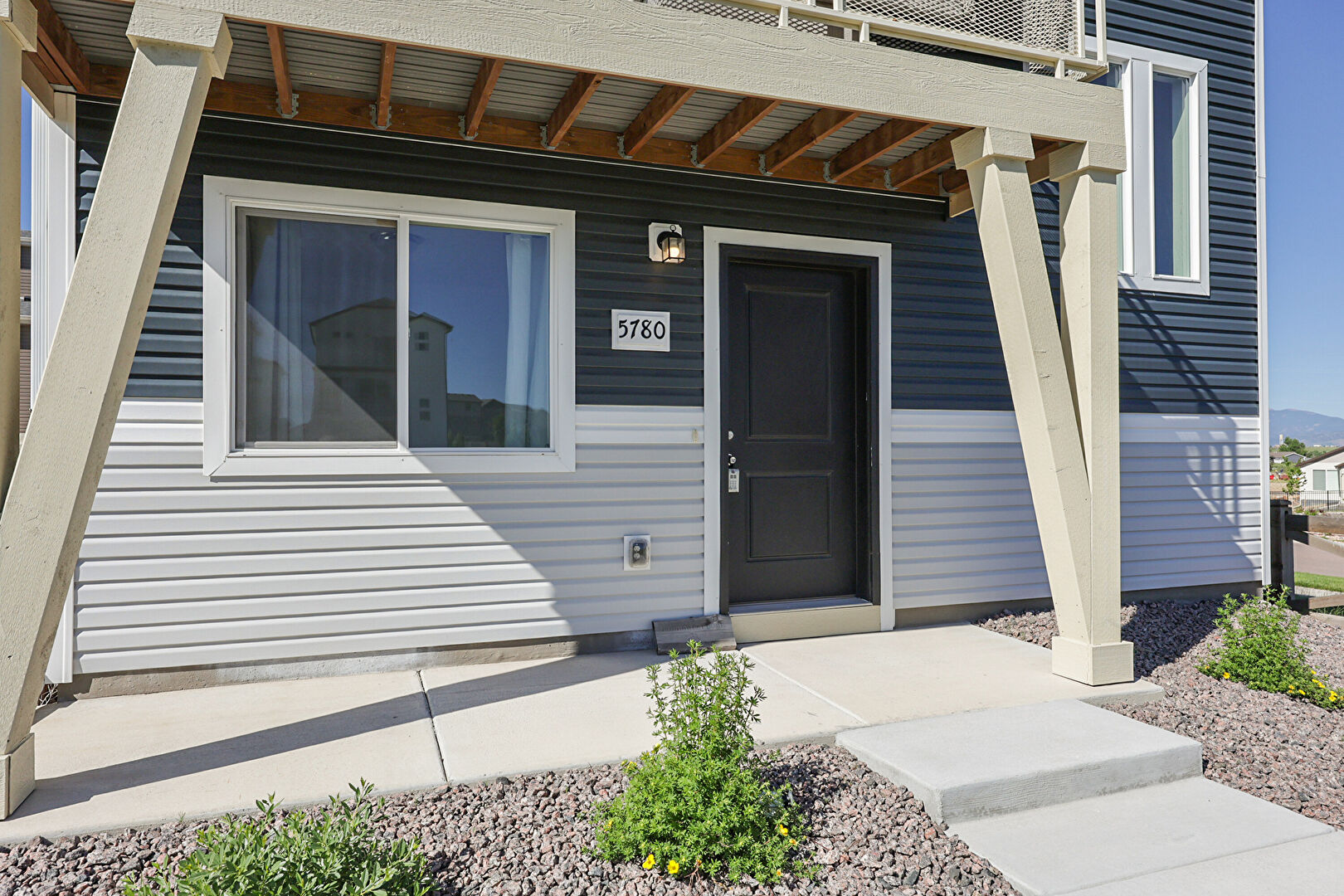 Balcony, Concrete Foundation, Downspout, Fence, Gate, Gutters, Horizontal Siding, Parking Pad, Porch, Residential View, Concrete Foundation, Downspout, Horizontal Siding, Mountain View