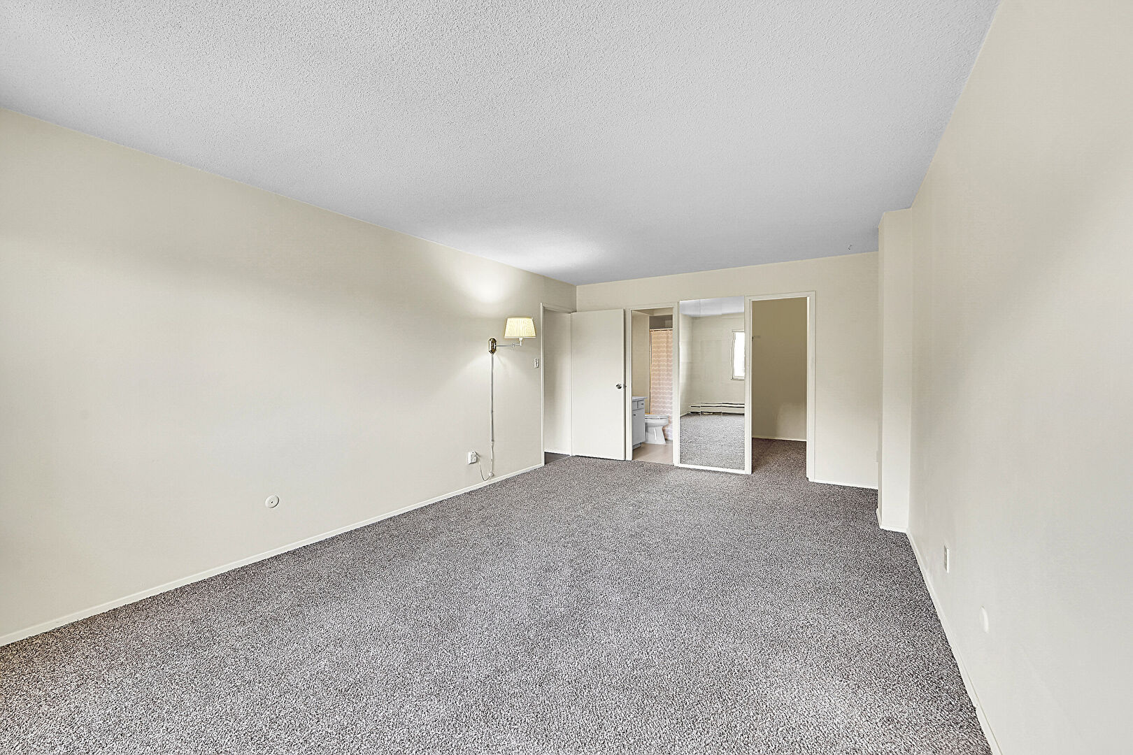 Baseboards Wall, Carpet, Drywall, Natural Light, Textured Ceiling, Baseboard Radiator