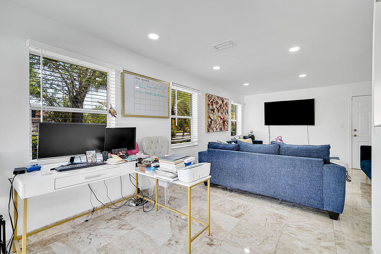 Baseboards Wall, Drywall, Marble Finish Floor, Natural Light, Office Area, Recessed Lighting, Vent, Marble Finish Floor, Natural Light, Office Area