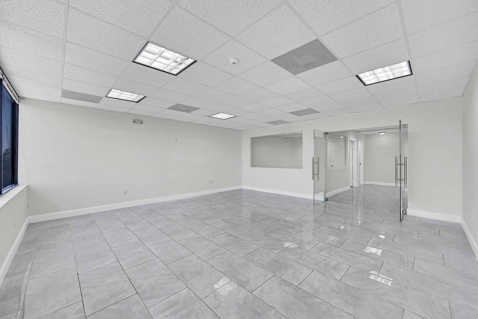 Baseboards Wall, Drop Ceiling, Drywall, Marble Finish Floor, Natural Light, Smoke Carbon Monoxide Detector, Tile Floor, Vent, Baseboards Wall, Drop Ceiling, Drywall, Natural Light