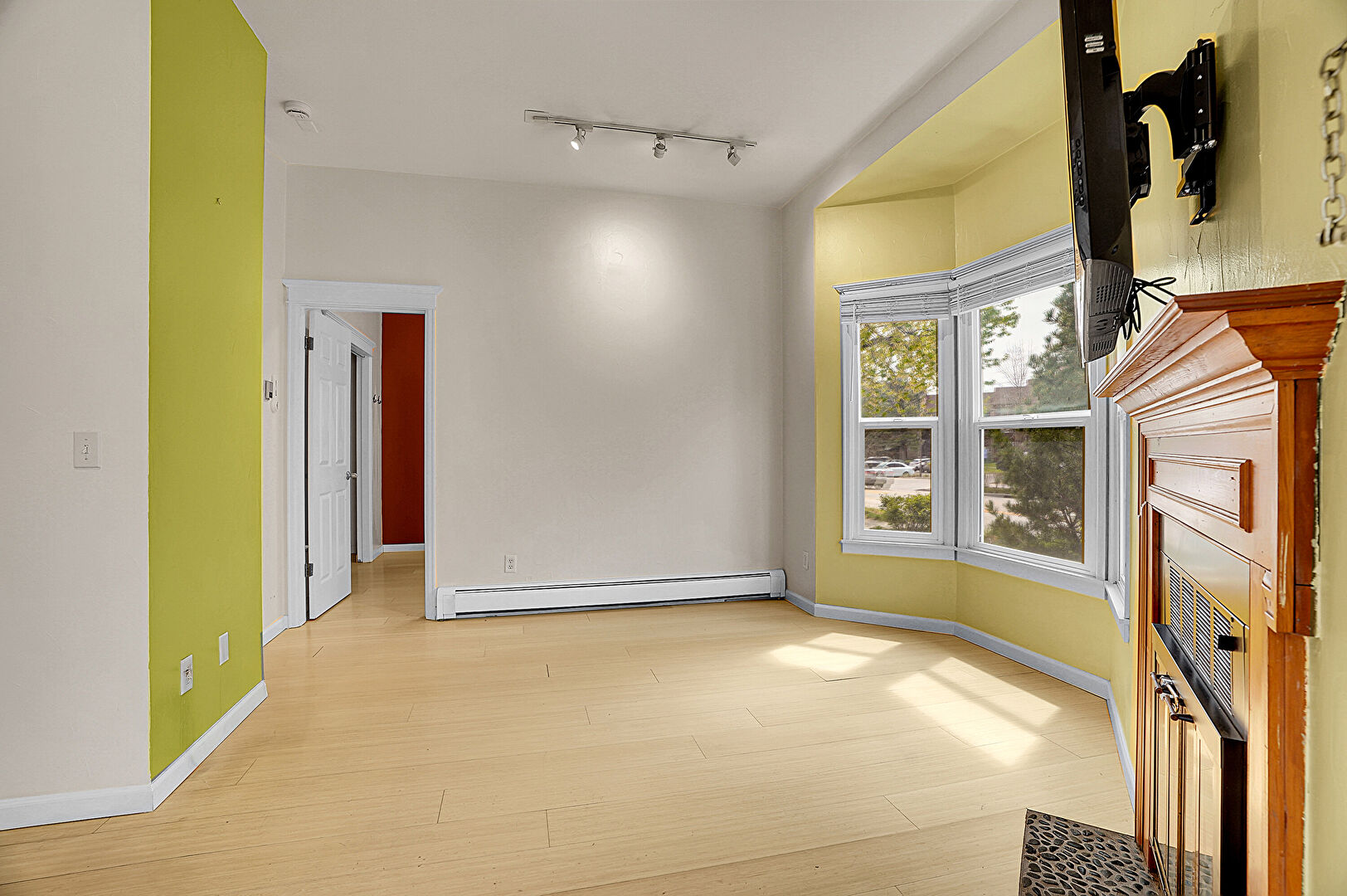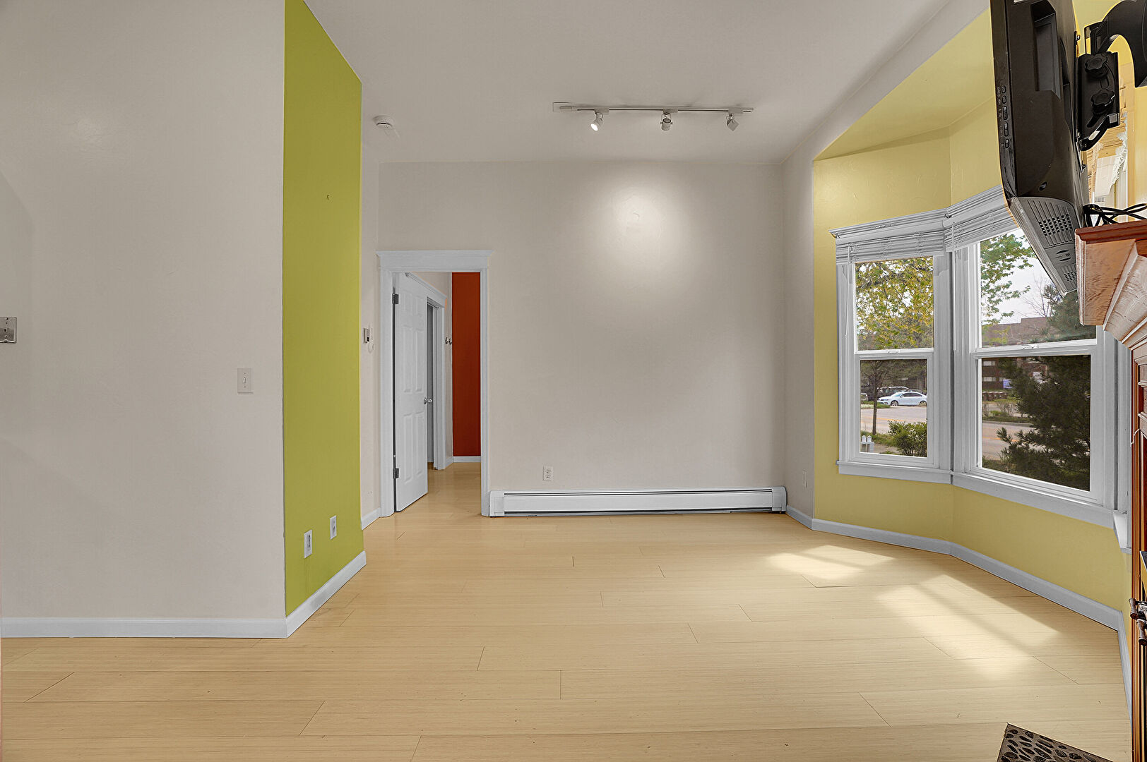 Baseboard Radiator, Baseboards Wall, Drywall, Fireplace, Natural Light, Smoke Carbon Monoxide Detector, Track Lighting, Vent, Wood Finish Floor, Baseboard Radiator, Baseboards Wall, Drywall, Natural Light, Wood Finish Floor