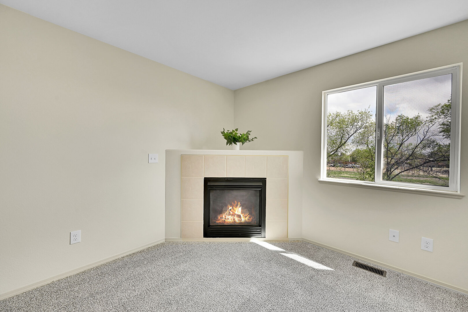 Baseboards Wall, Carpet, Drywall, Fireplace, High Ceiling, Natural Light, Scuttle, Stairs, Vaulted Ceiling, Vent, Baseboards Wall, Vaulted Ceiling, Vent, Wood Finish Floor
