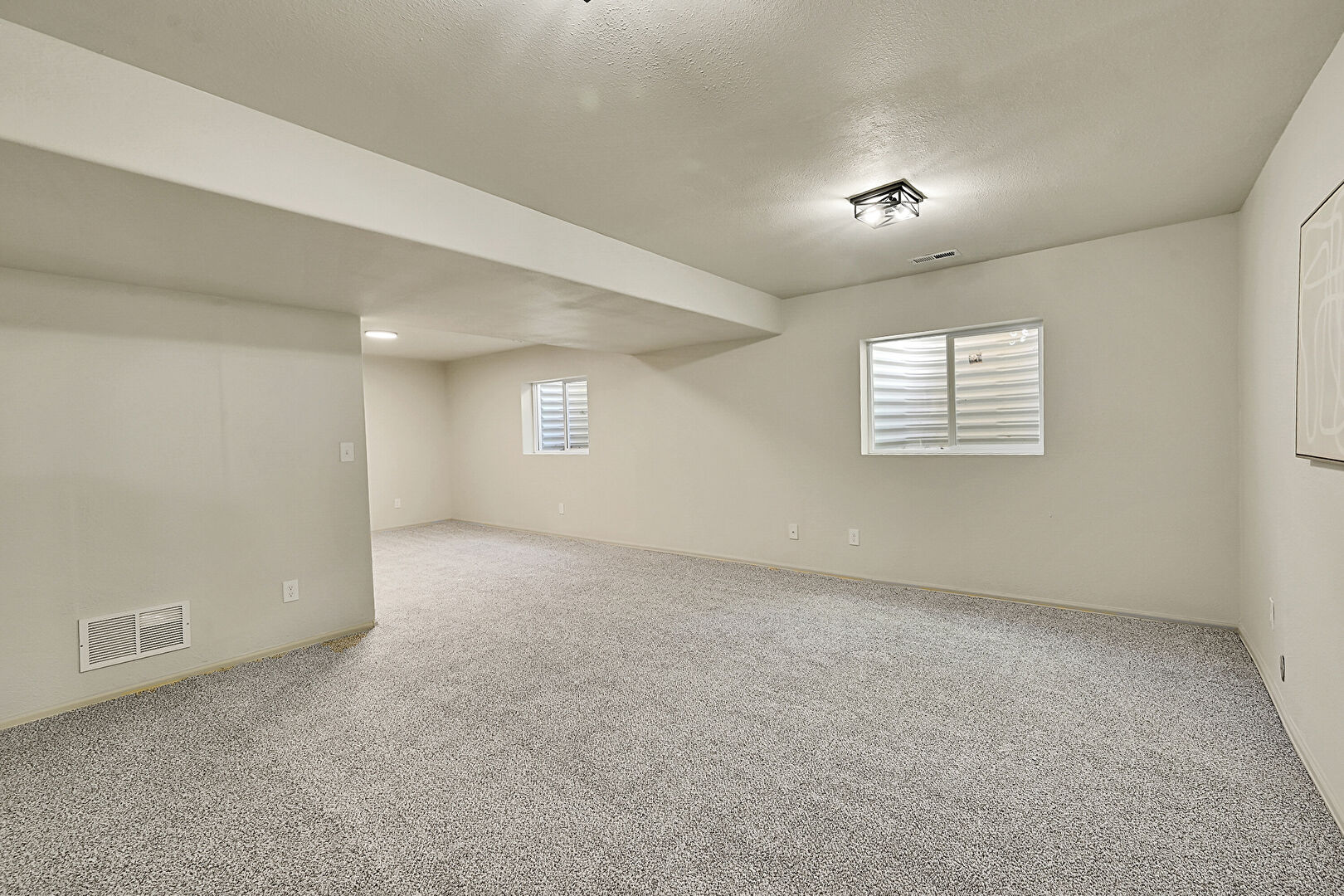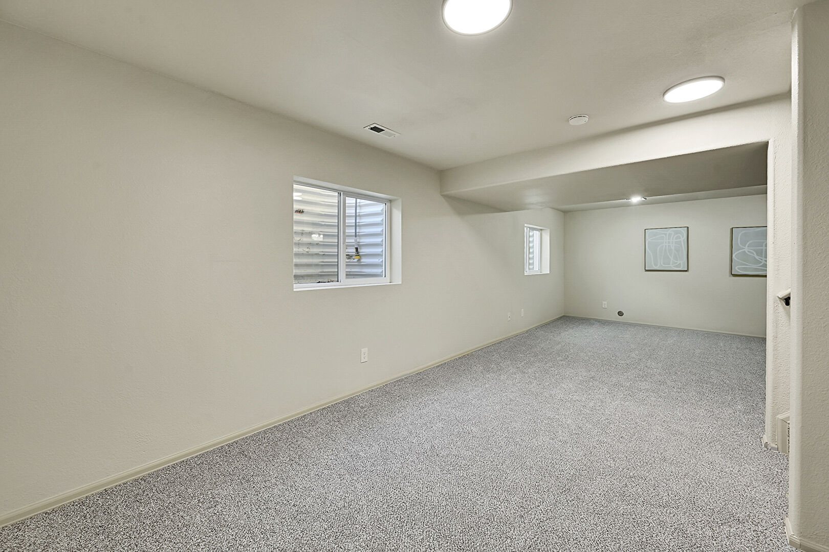 Baseboards Wall, Basement, Carpet, Drywall, Natural Light, Stairs, Textured Ceiling, Vent, Baseboards Wall, Natural Light, Smoke Carbon Monoxide Detector, Stairs