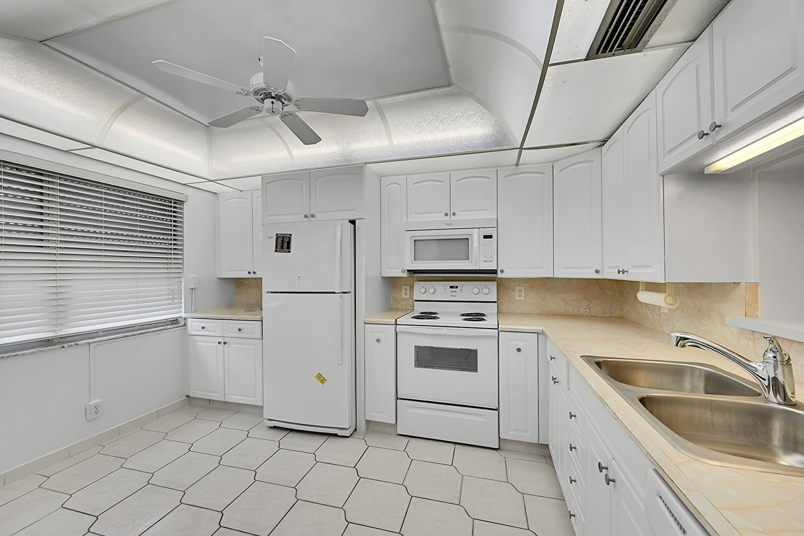 Arched Cabinets, Baseboards Wall, Ceiling Fan, Drywall, Pass Through Window, Raised Cabinets, Tile Floor, Tray Ceiling, Vent, Drywall, Natural Light, Vent
