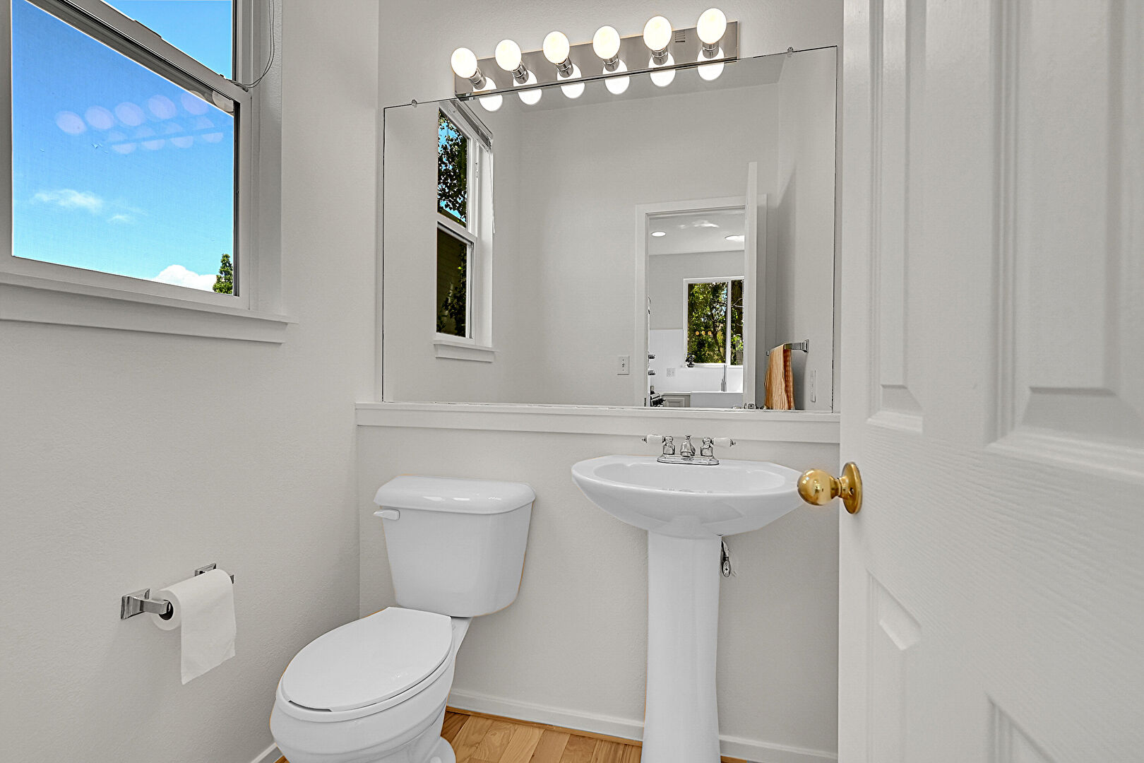 Baseboards Wall, Drywall, Full Bathroom, Half Bathroom, Natural Light, Tile Floor, Wood Finish Floor, Drywall, Vanity