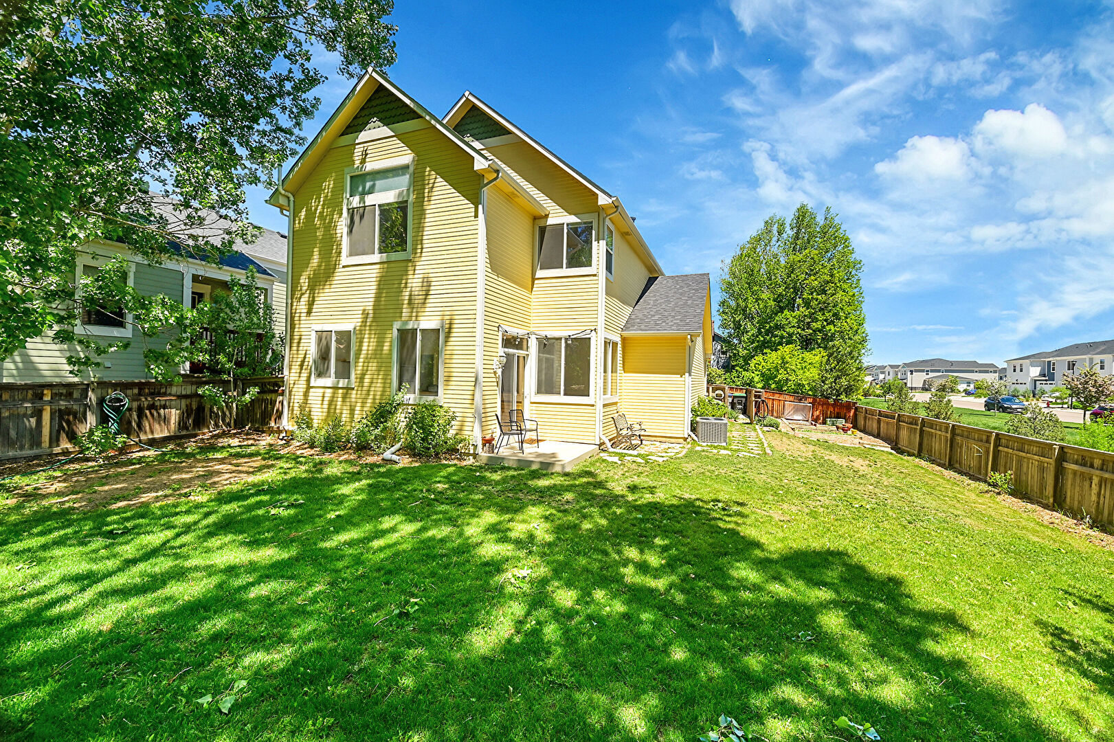 Central Ac, Downspout, Gutters, Horizontal Siding, Lawn, Shingle Roof, Fence