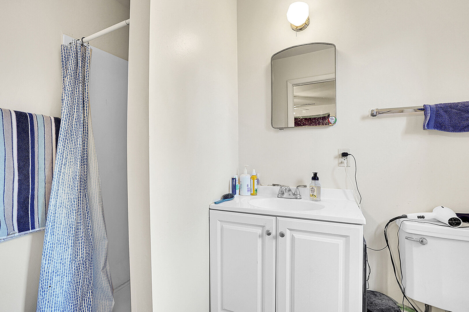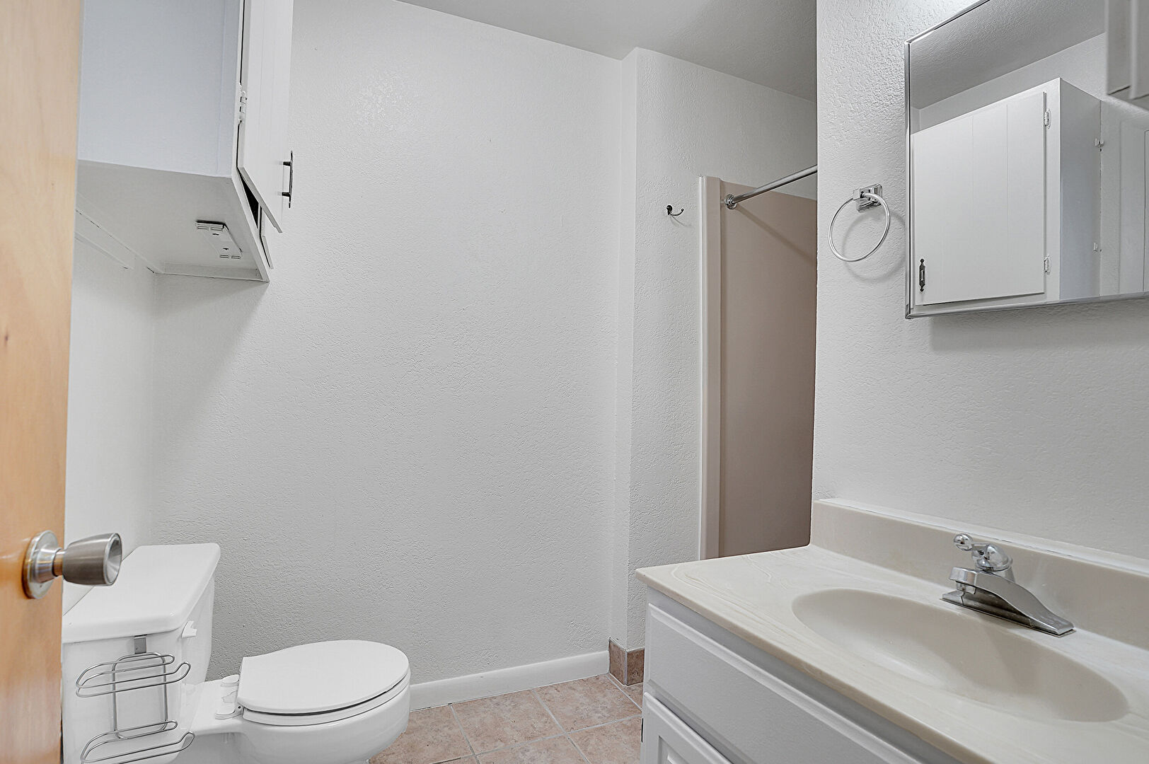 Baseboards Wall, Drywall, Full Bathroom, Natural Light, Tile Floor, Vanity, Combined Bath Shower, Full Bathroom