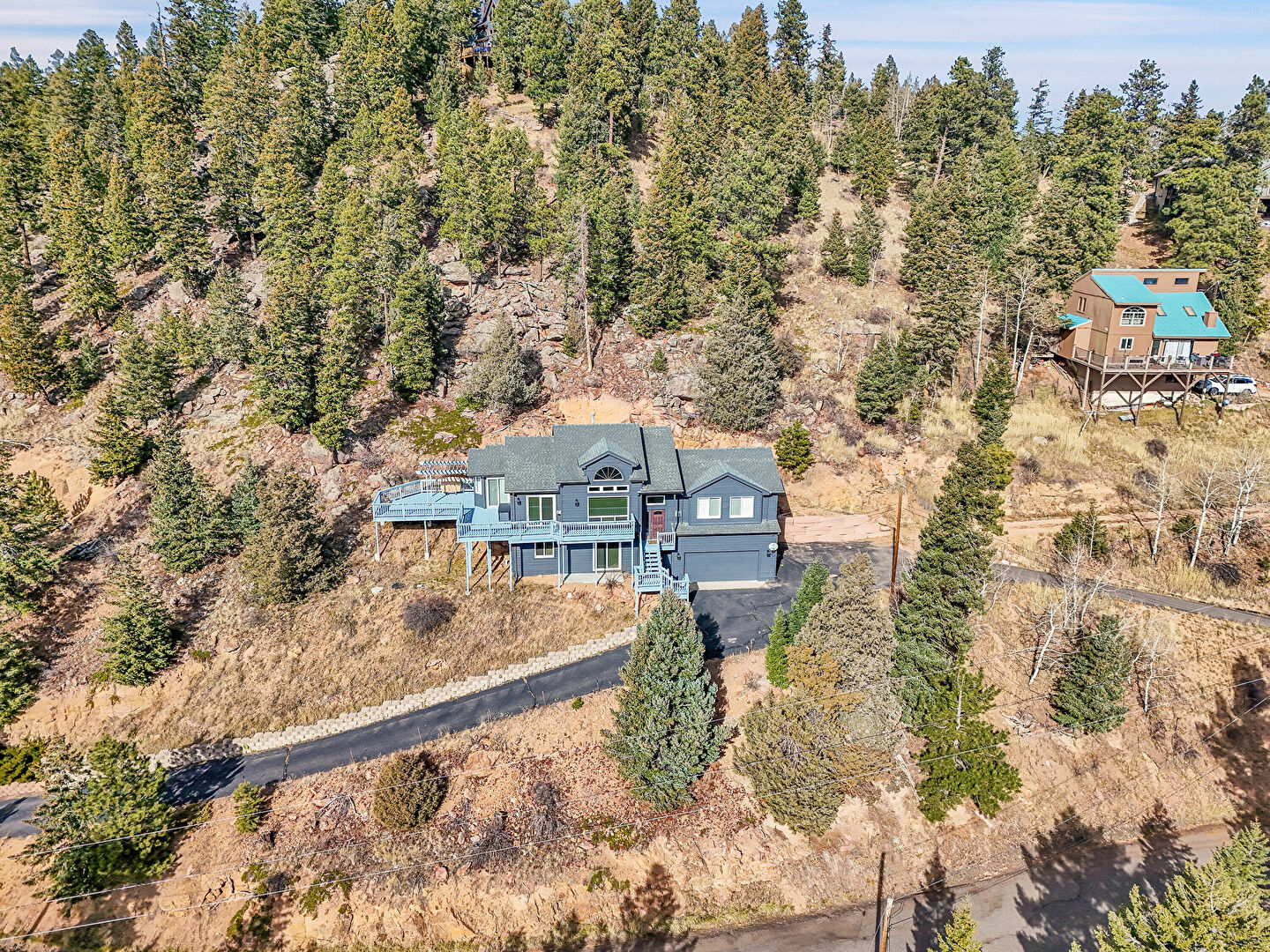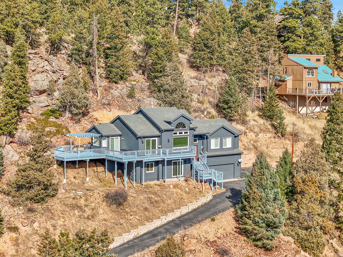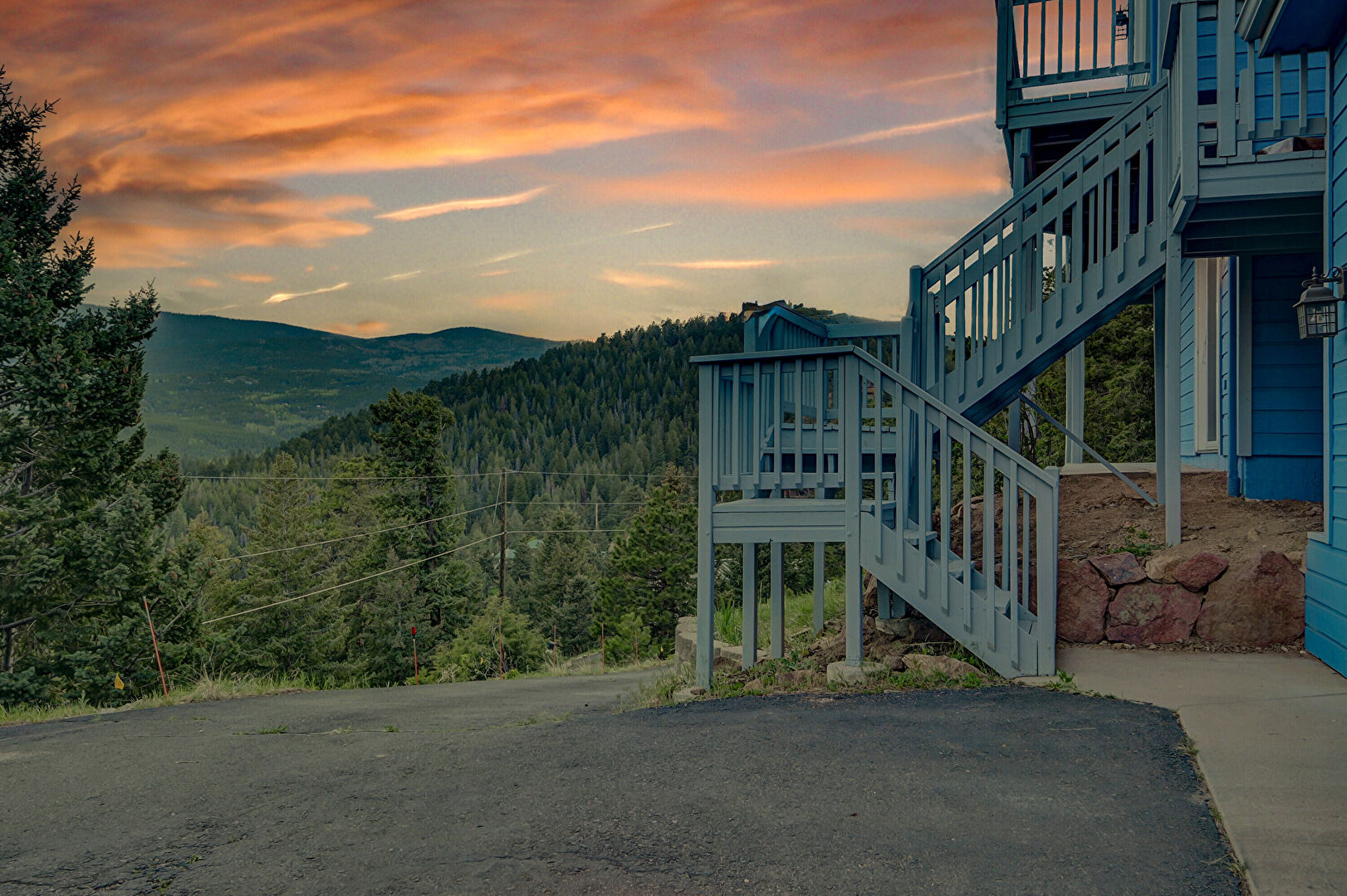 Balcony, Basement Garage, Built In Garage, Deck, Driveway, Forest View, Mountain View, Stairs, Driveway, Forest View, Mountain View, Stairs