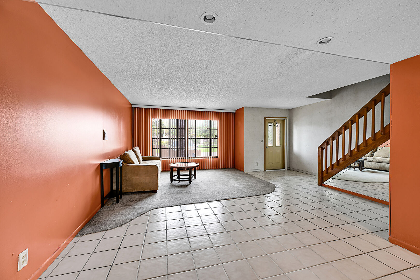 Baseboards Wall, Carpet, Drywall, Natural Light, Stairs, Tile Floor, Vent, Stairs, Textured Ceiling