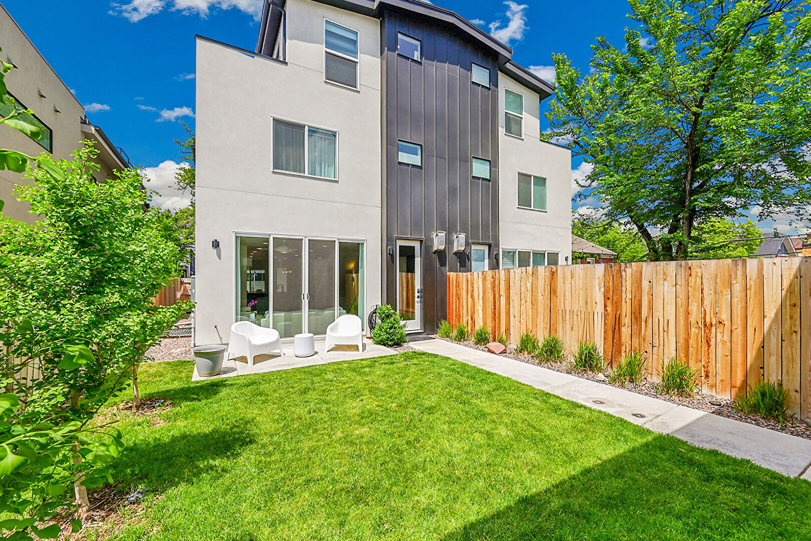Balcony, Board Batten Siding, Brick Siding, Downspout, Fence, Gas Meter, Gate, Lawn, Patio, Vertical Siding, Fence, Stucco Siding