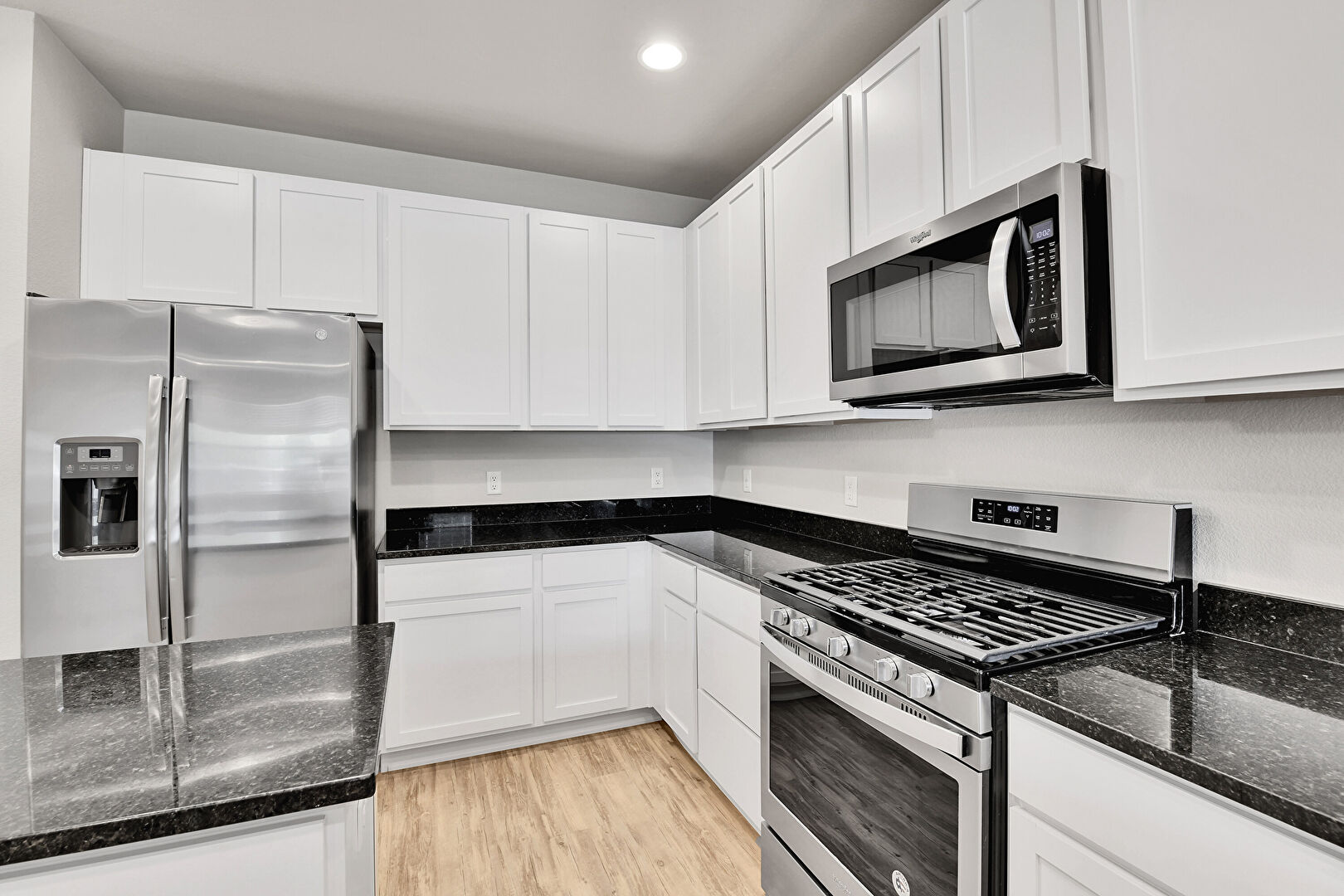 Baseboards Wall, Ceiling Fan, Drywall, Kitchen Bar, Kitchen Island, Kitchen Peninsula, Natural Light, Notable Chandelier, Pendant Lighting, Recessed Lighting, Shaker Cabinets, Smoke Carbon Monoxide Detector, Stone Countertops, U Shaped Kitchen, Vent, Wood Finish Floor, Drywall, Kitchen Peninsula, Shaker Cabinets