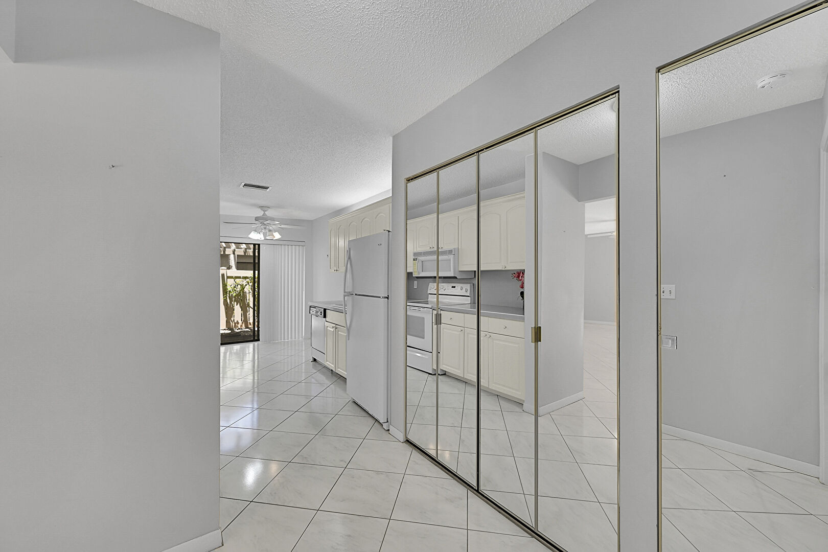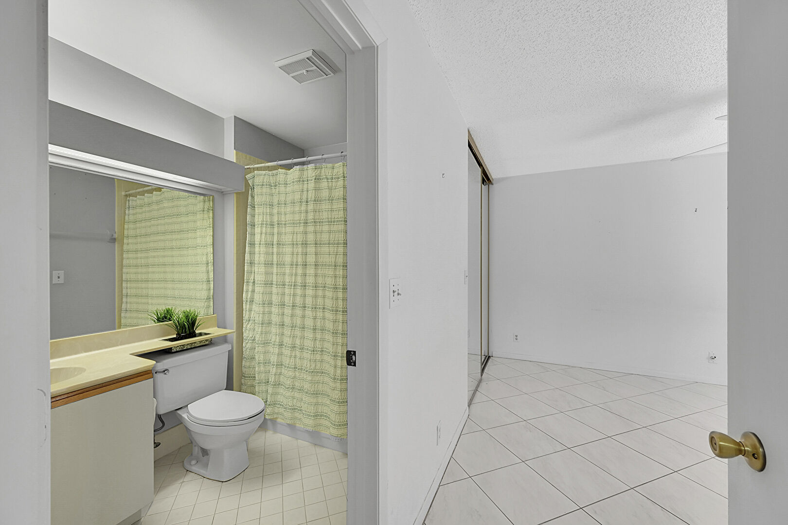 Baseboards Wall, Ceiling Fan, Closet, Drywall, Natural Light, Textured Ceiling, Tile Floor, Vanity, Vent, Drywall, Full Bathroom, Textured Ceiling
