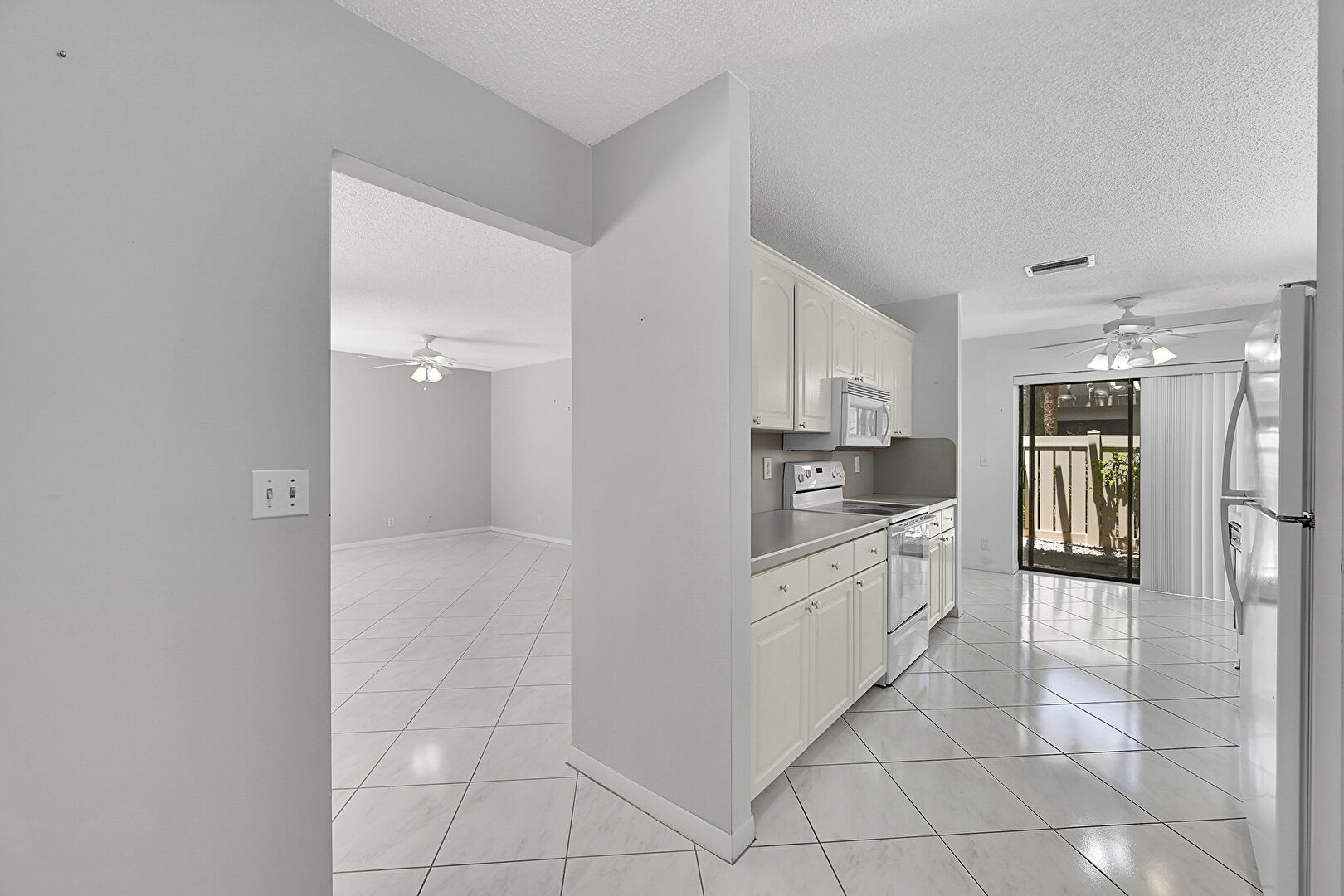 Arched Cabinets, Baseboards Wall, Ceiling Fan, Crown Molding Cabinets, Drywall, Galley Kitchen, Natural Light, Opens To Living Area, Raised Cabinets, Textured Ceiling, Tile Floor, Vent, Baseboards Wall, Crown Molding Cabinets, Drywall, Natural Light, Raised Cabinets, Textured Ceiling