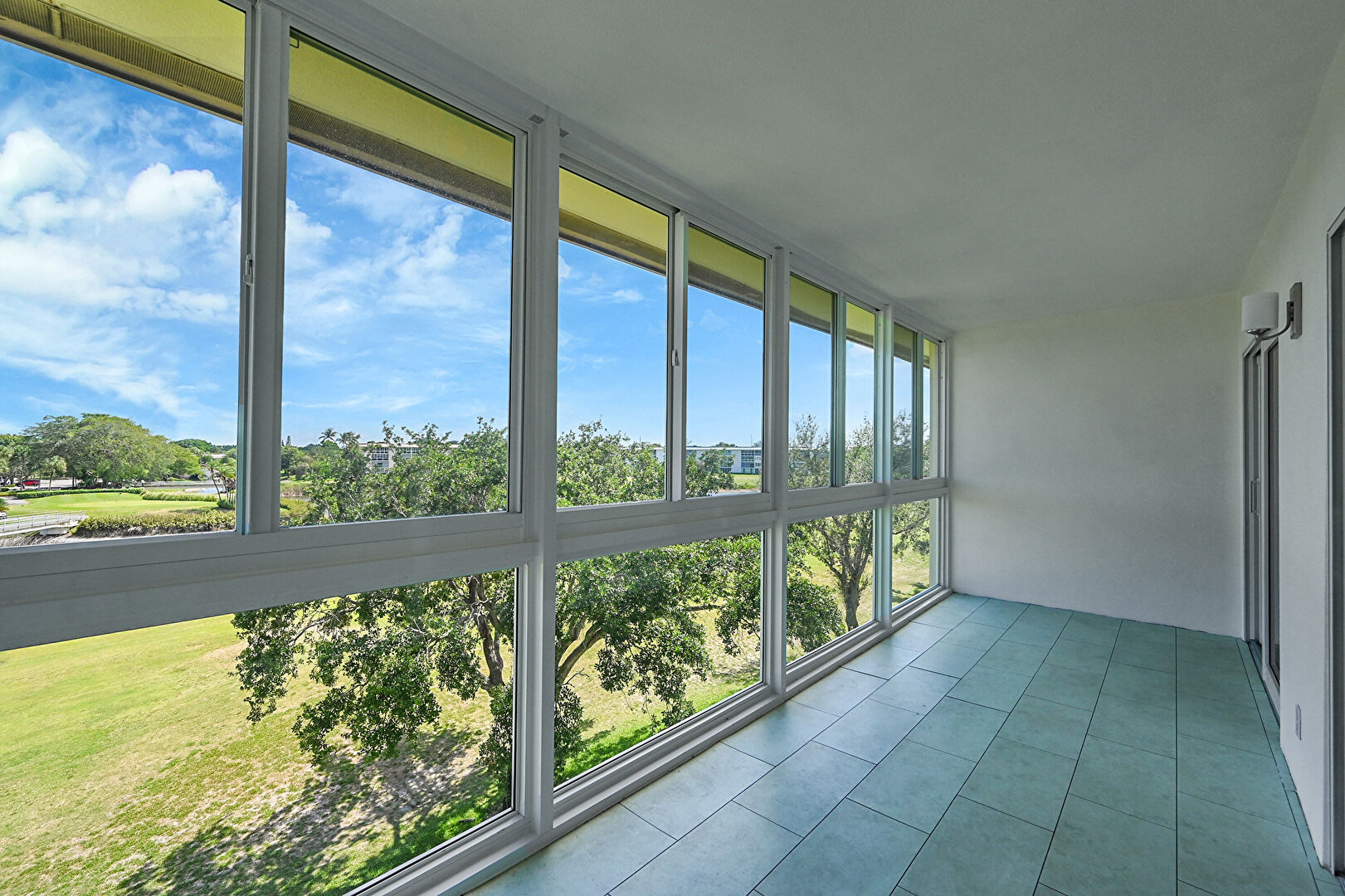 Baseboards Wall, Drywall, Floor Ceiling Windows, Natural Light, Office Area, Smoke Carbon Monoxide Detector, Sunroom, Textured Ceiling, Tile Floor, Vent, Water View, Drywall, Golf Course View, Laundry, Tile Floor