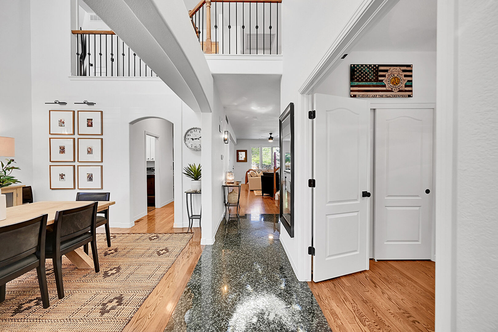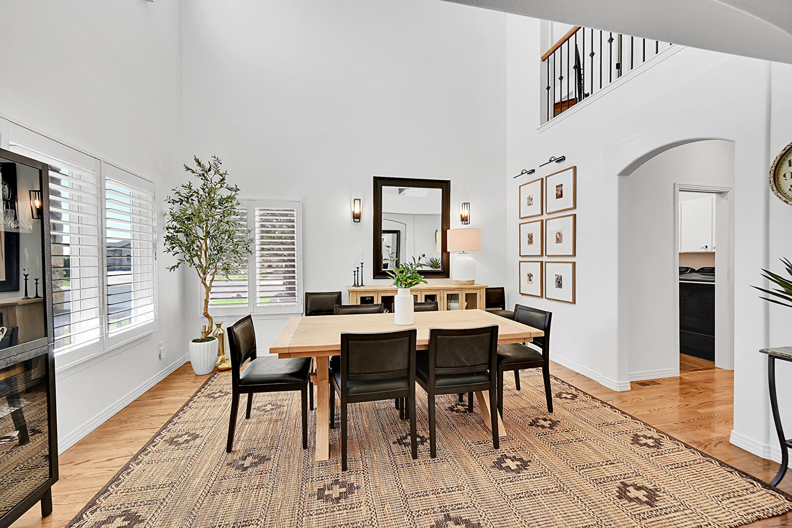 Arched Walkways, Baseboards Wall, Ceiling Fan, High Ceiling, Natural Light, Wood Finish Floor, Drywall