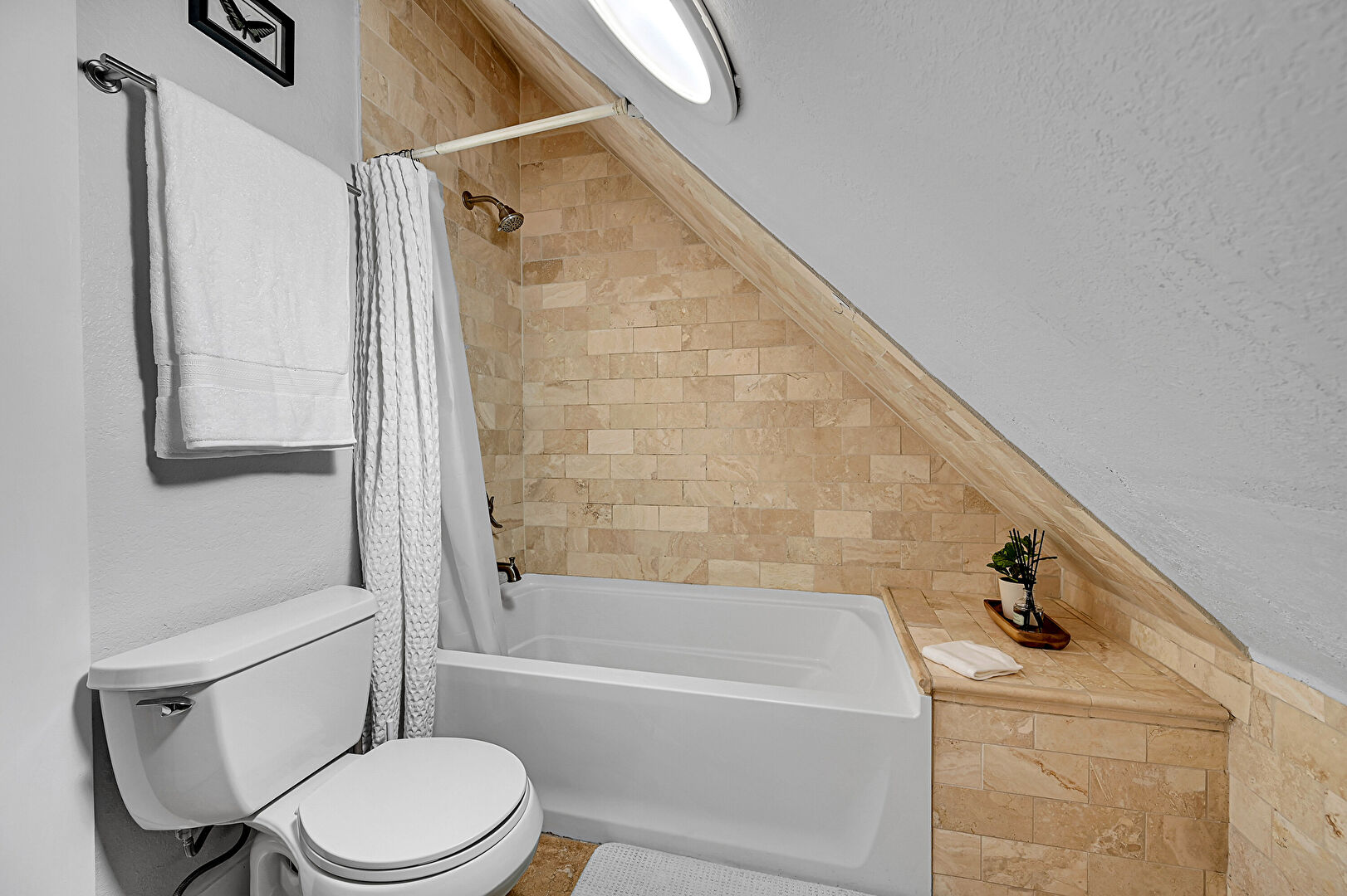 Combined Bath Shower, Full Bathroom, Textured Wall, Tile Floor, Natural Light