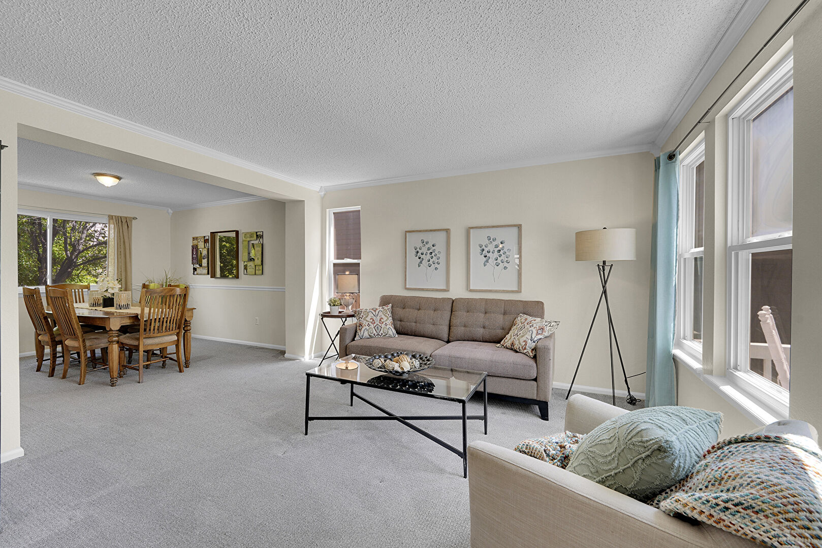 Baseboards Wall, Carpet, Crown Molding, Drywall, Natural Light, Stairs, Textured Ceiling, Baseboards Wall, Natural Light