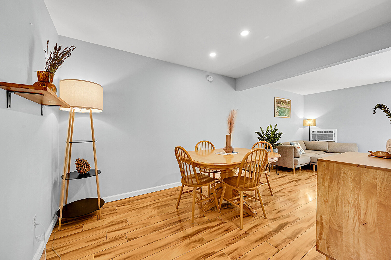 Baseboards Wall, Drywall, Natural Light, Recessed Lighting, Smoke Carbon Monoxide Detector, Wall Mounted Ac, Wood Finish Floor, Natural Light, Recessed Lighting, Wood Finish Floor