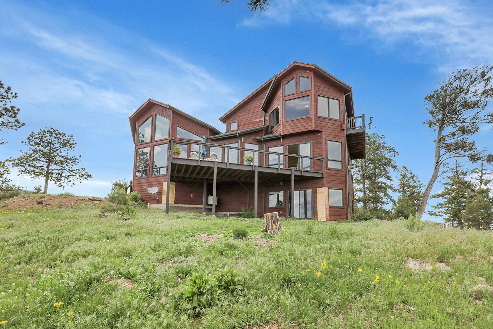 Deck, Driveway, Forest View, Glass Siding, Lawn, Mountain View, Driveway, Forest View, Mountain View, Shingle Roof
