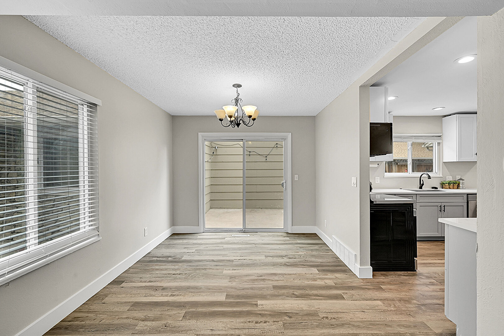 Baseboards Wall, Drywall, Natural Light, Recessed Lighting, Textured Ceiling, Wood Finish Floor, Notable Chandelier