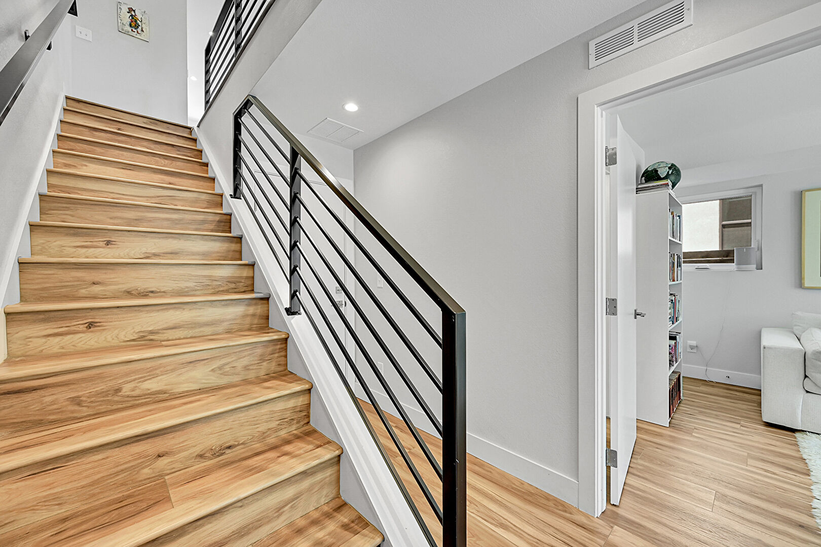 Baseboards Wall, Drywall, Natural Light, Recessed Lighting, Smoke Carbon Monoxide Detector, Stairs, Vent, Wood Finish Floor, Baseboards Wall, Recessed Lighting