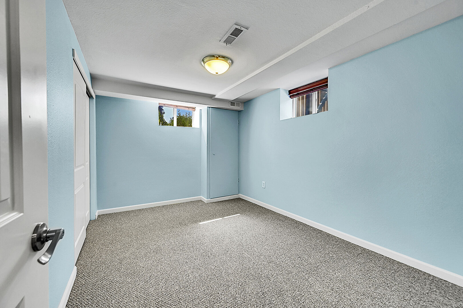 Baseboards Wall, Basement, Carpet, Drywall, Natural Light, Textured Ceiling, Vent, Carpet, Natural Light