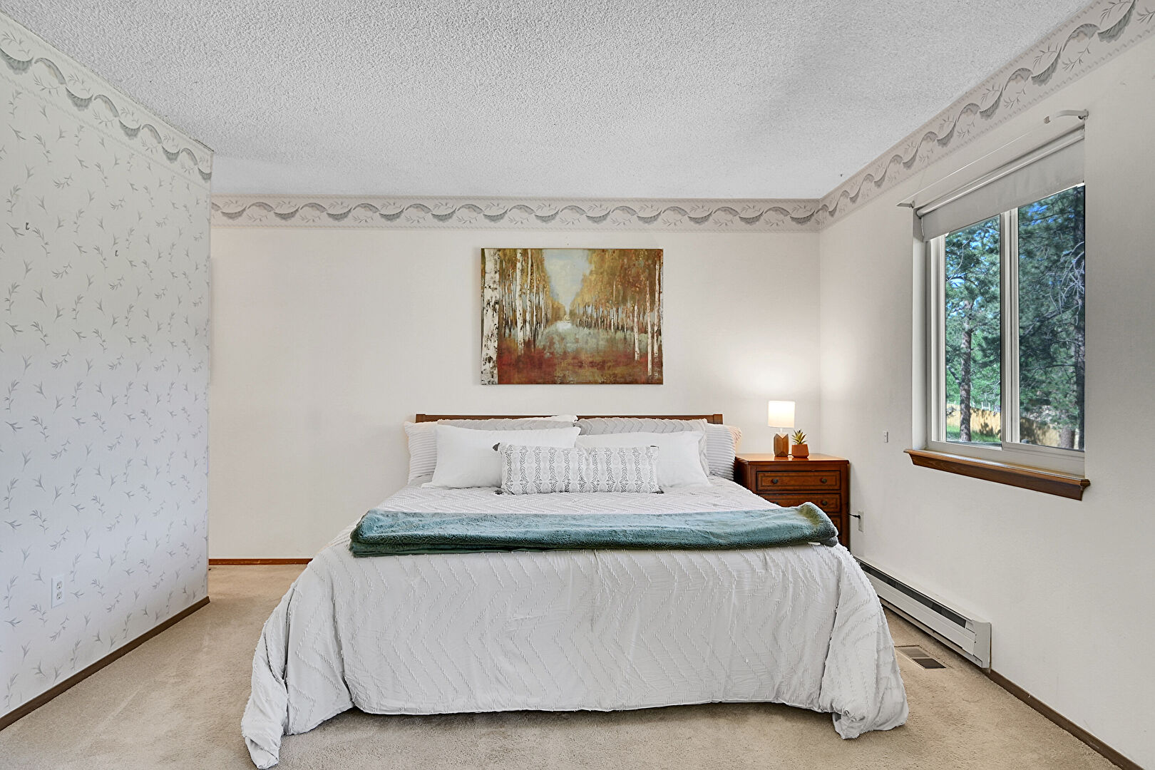 Baseboard Radiator, Baseboards Wall, Carpet, Closet, Drywall, Natural Light, Textured Ceiling, Vent, Wallpaper Wall, Carpet, Drywall, Natural Light, Textured Ceiling, Wallpaper Wall