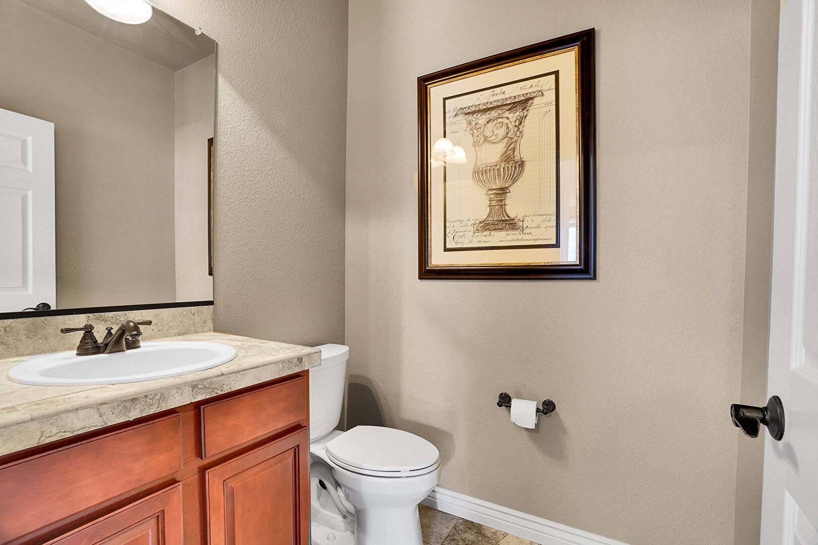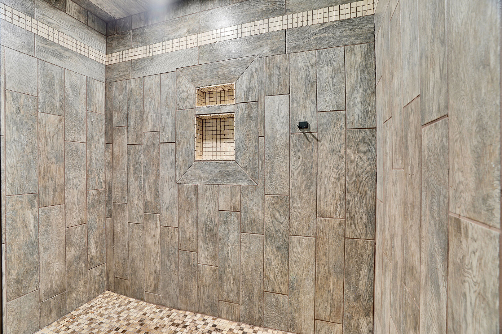 Baseboards Wall, Combined Bath Shower, Double Vanity, Full Bathroom, Half Bathroom, Textured Wall, Tile Floor, Vanity, Vent, Wood Finish Floor, Drywall, Full Bathroom, Textured Ceiling, Tile Floor